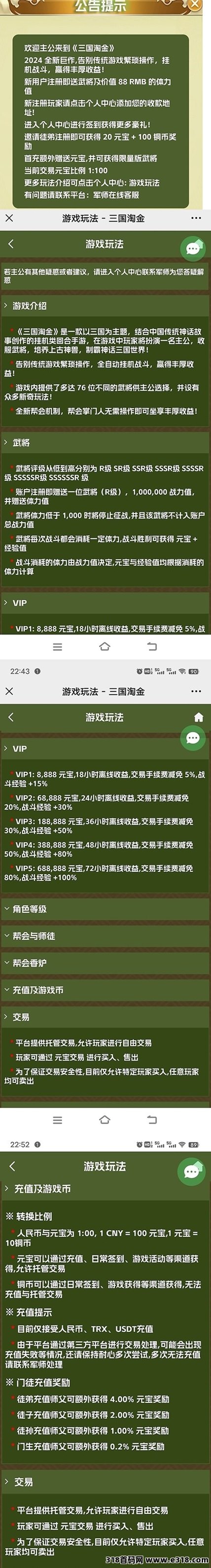 武将:新手注册免费送一位武将(R级)全自动离线战斗,升级武将、补充体力可增加元宝产出,100元宝1元,元宝有3种方式提现;