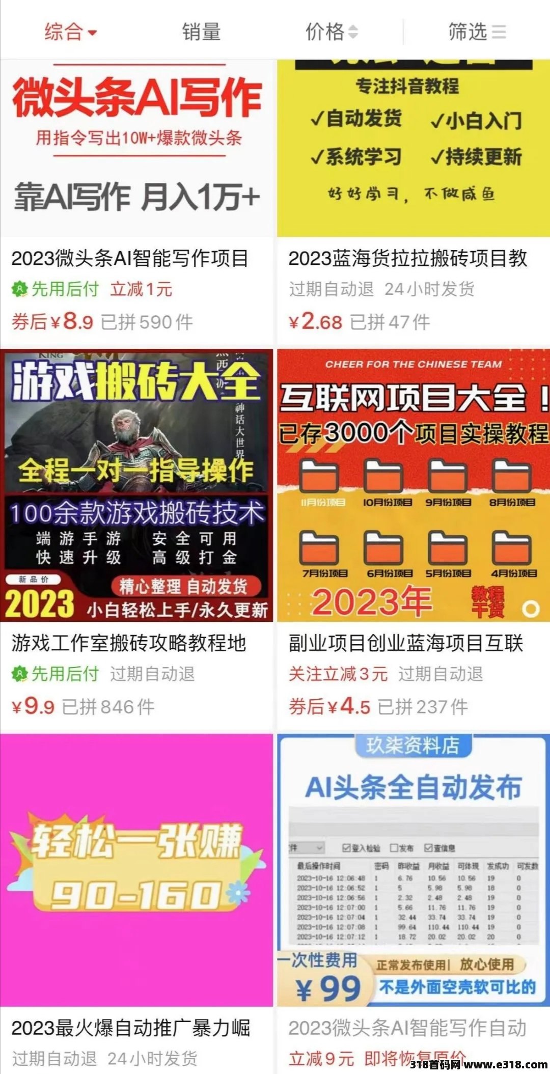 我知道还是有人会嘴硬,现在某宝,某多甚至一些资源平台上这些2980项目才卖几块钱甚至免费,我才不会这么傻去报名交学费呢。没错,你能想到这里我确实给你点个赞,但是这也只是五十步笑百步,我可以很负责任的告诉你,这些课根本赚不到钱,你信你可以试试,能赚到算我输。