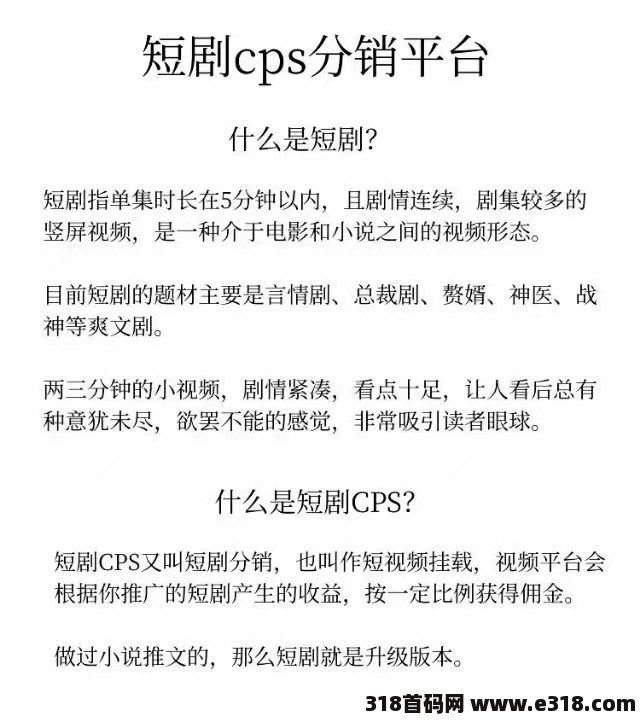 悦拜短剧【鲤享】是由悦拜团队开发运营的短剧CPS分销平台,拥有200多人的技术和运营团队。该应用程序得到了许多短剧演员的授权,为用户提供了丰富的短剧素材。用户可以利用链接吸引观众,从他们解锁下一集所支付的费用或观看的广告中赚取收入,只需在鲤鱼中下载材料,进行二次剪辑并发布到主要平台。此外,该应用程序不要求用户拥有粉丝的最低限额,因此任何人都可以快速获得流量并实现流量。