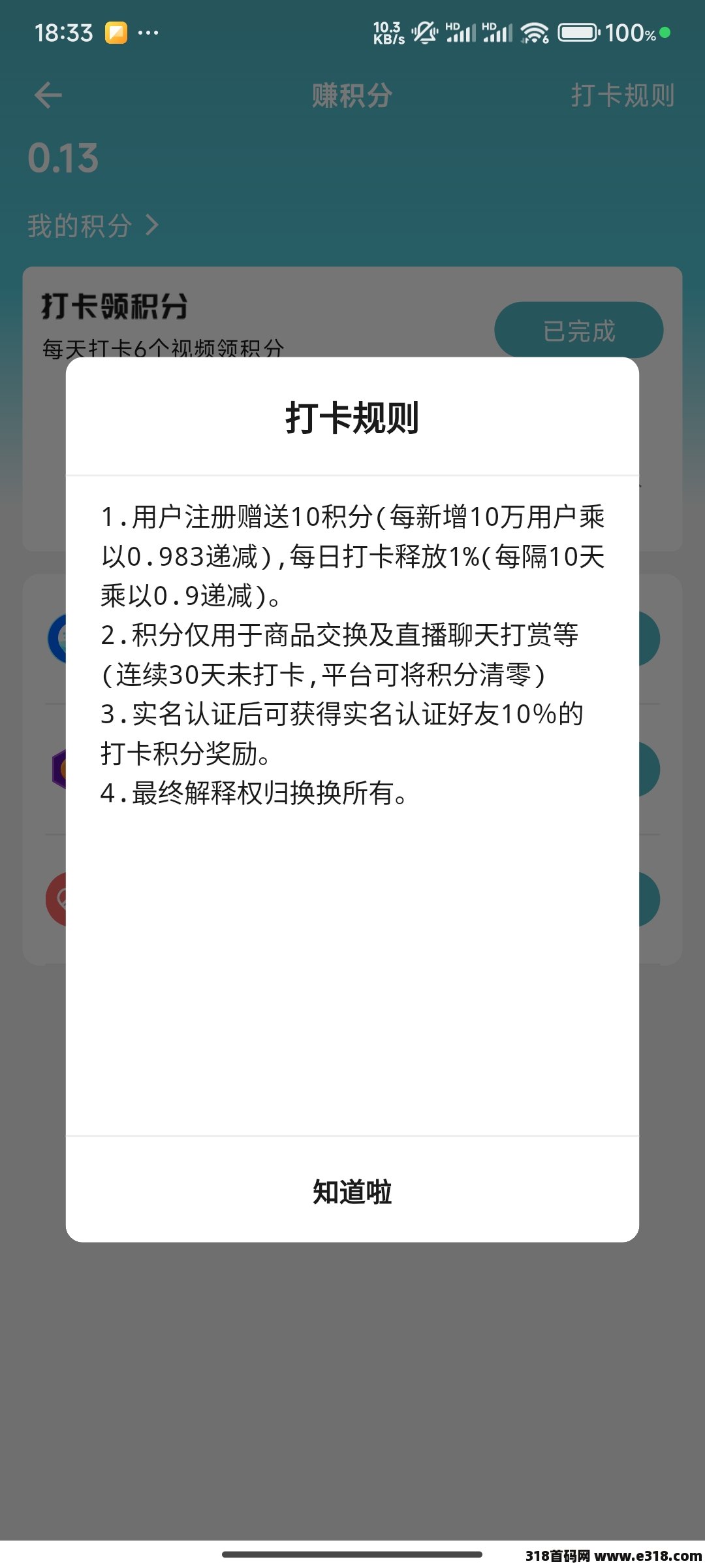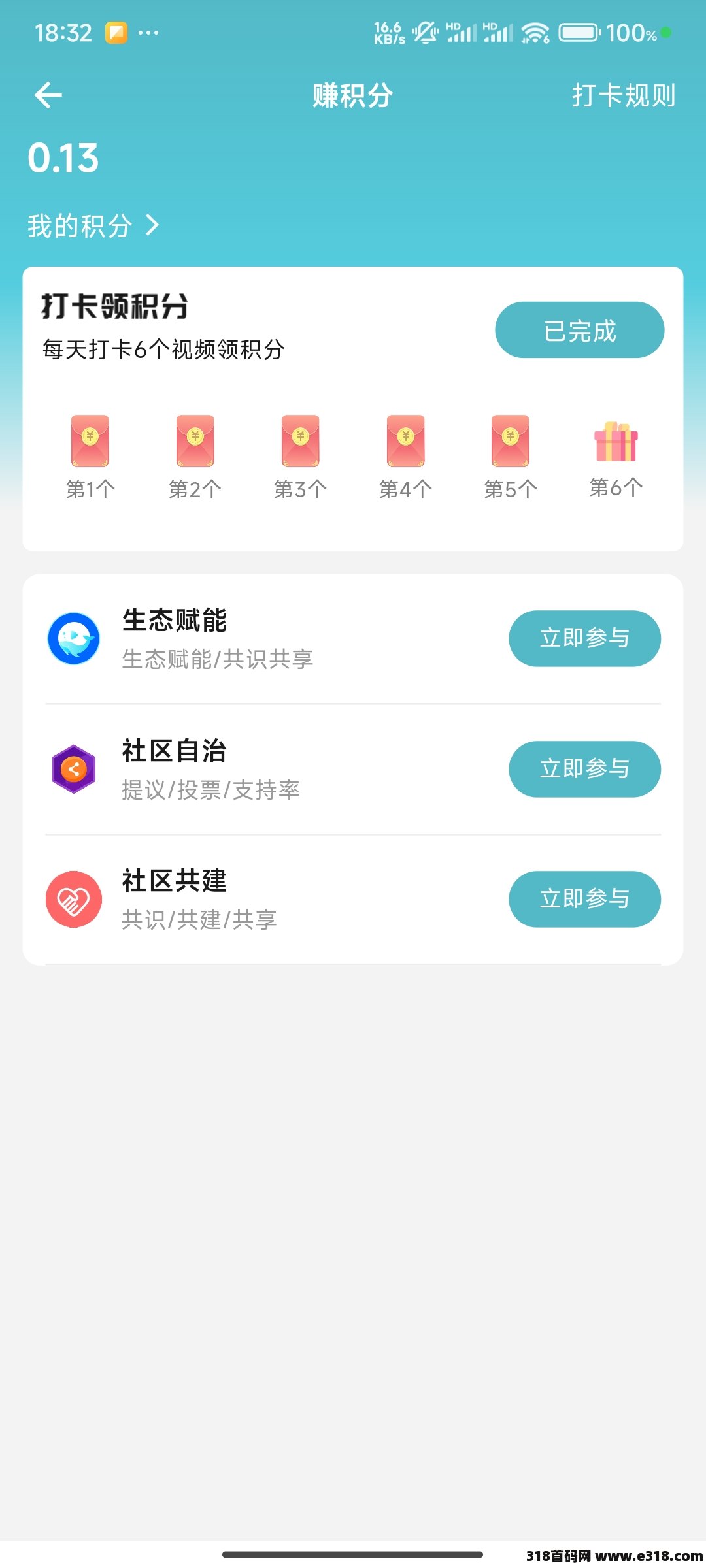 每日任务:免费实名后,点击我的→赚取积分→每天6个视频领积分