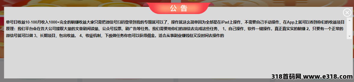 在互联网时代,随着移动支付的普及,微信不仅仅是一个社交工具,也成为了很多人生活中的一部分。近期,一种名为“微信挂机”的兼职模式悄然兴起,声称每天能带来50-80元的收益,吸引了不少想要告别忙碌生活、追求财务自由的人。那么,这种微信挂机究竟是怎样的一个项目?它真的能帮助我们实现财务自由吗?