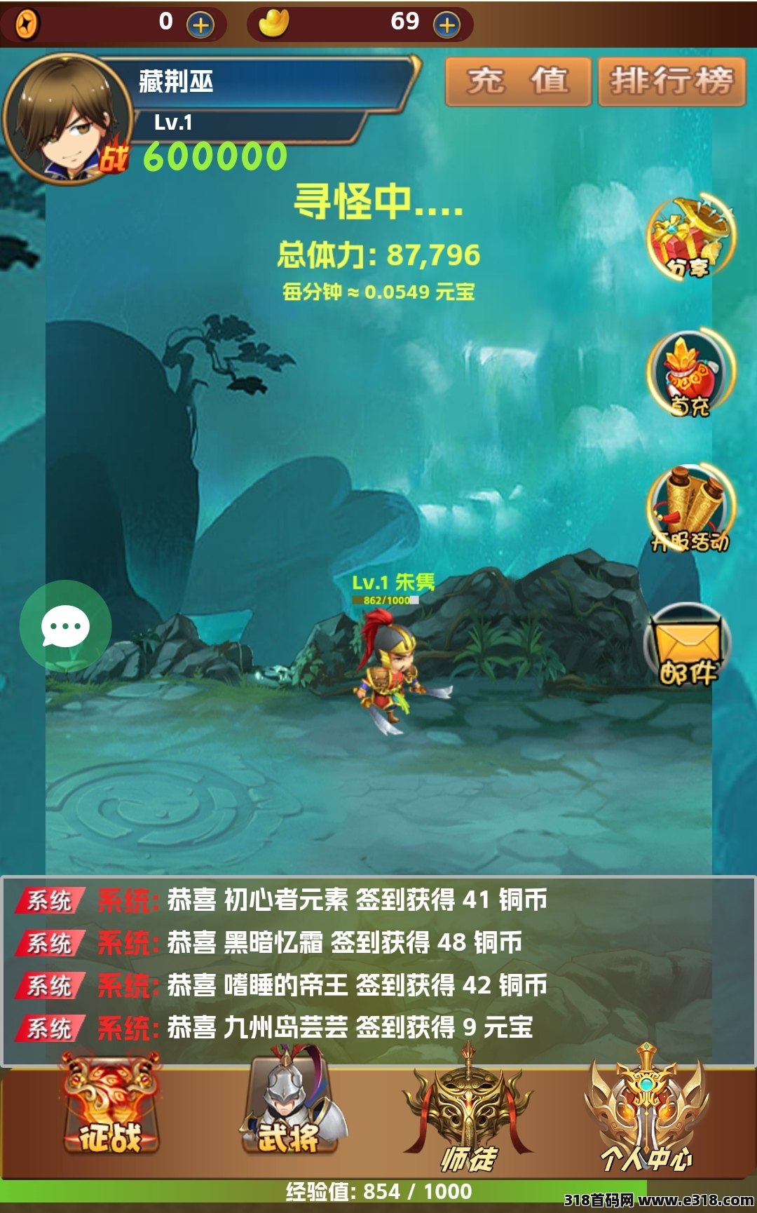 三国淘金全自动挂机打怪赚钱,注册得价值88元的体力值和一级武将,,可零撸