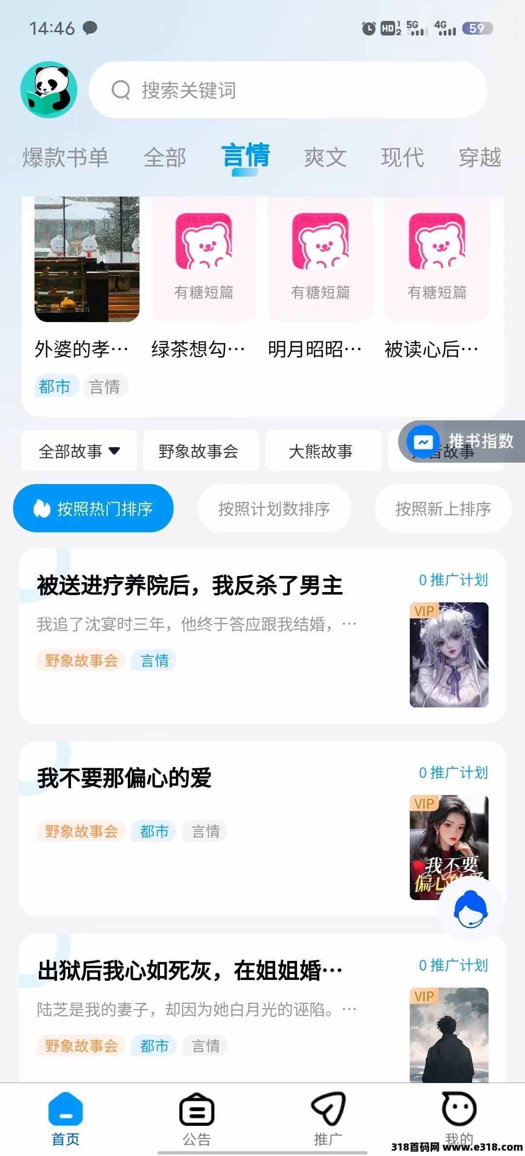 熊猫推文,输入抖音号,快手号,免费挂载爆款小说。有人点击开会员你就有米收,坐等暴富!每天更新几千本个小说等你来推广,坐拿2代收益!