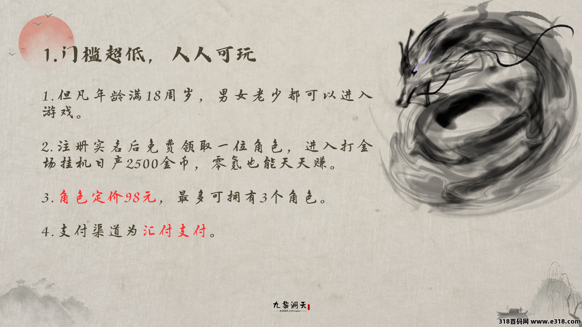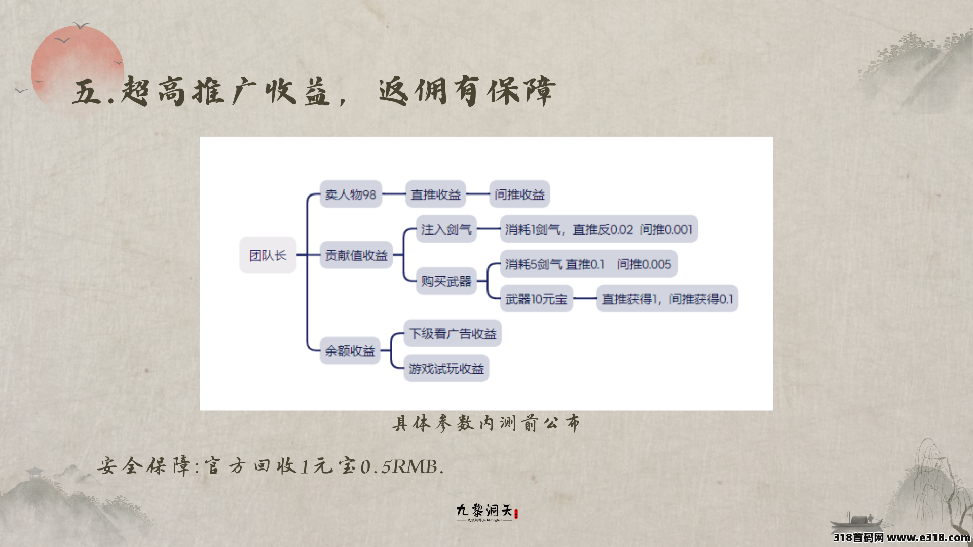 《九黎洞天》计划2月底左右上线,宣称已经对接了500+的团队长,目前是预热阶段。