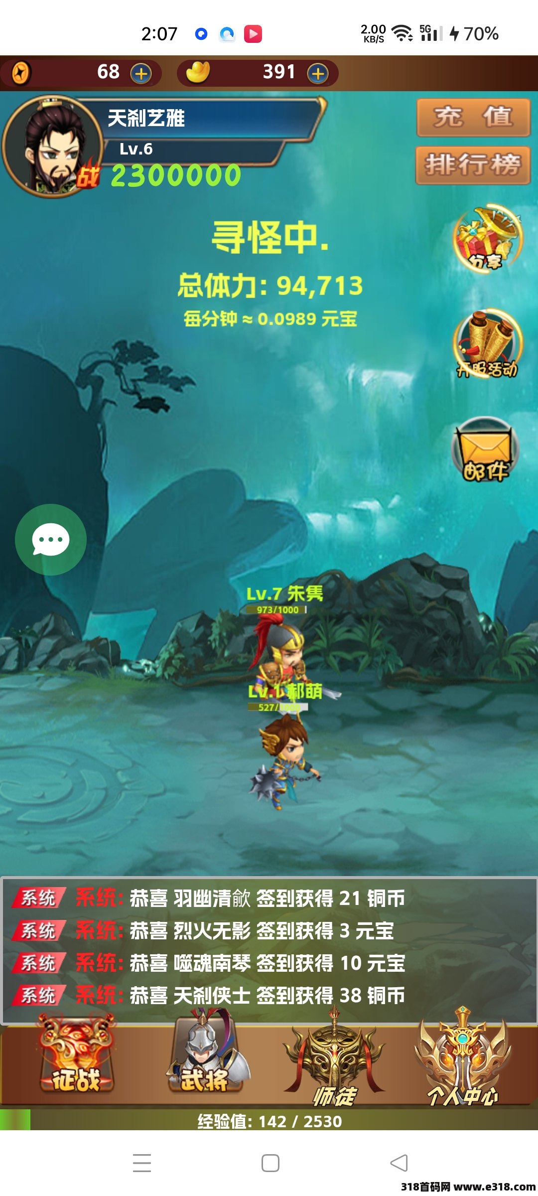 一、新用户福利:注册即送武将及价值 88 RMB 的体力值!让你在战斗初期就能拥有强大的战斗力,轻松碾压对手。