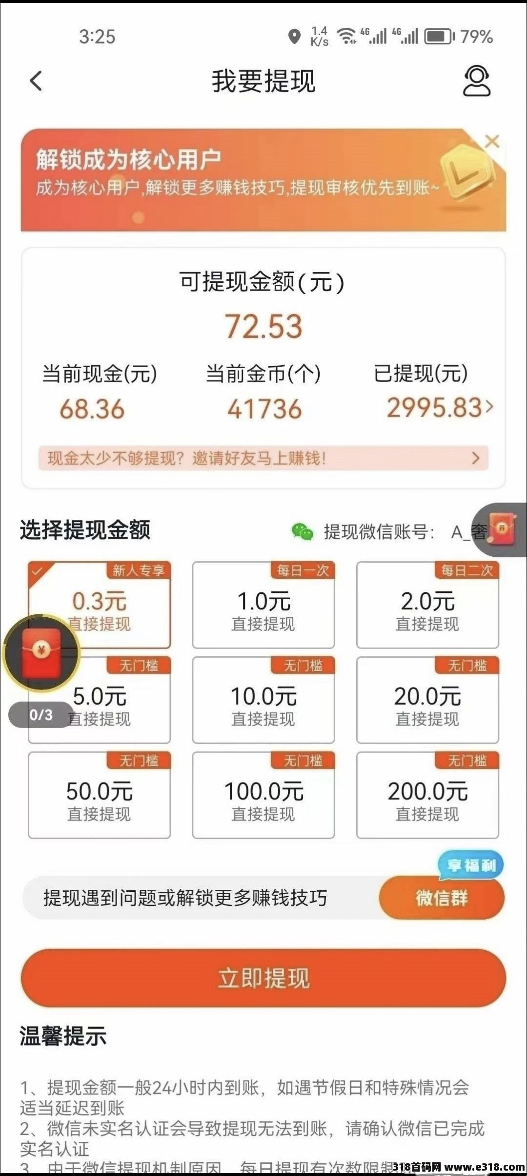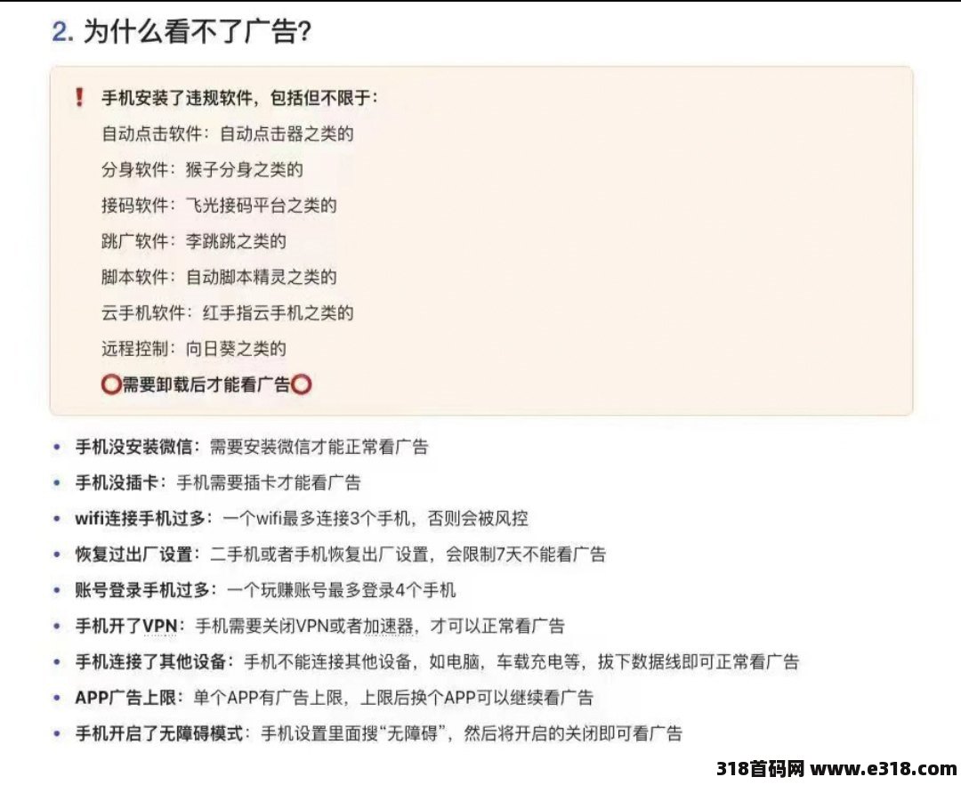 自己看广告赚钱: 每条广告5000金币=0.5元 1条广告30秒, 可以多步手机同时操作, 30*0.5*3=45元 一天用不了1个小时。 推广: 一级:10%佣金提成 团长:下级10%佣金提成,(你下级下级下级下下级邀请人你也有奖励提成) 手下升级团长,你获得团长提现10%收益(前提你也是团长) 注意事项: 手机要安装淘宝,快手, 抖音, 不能分身,虚拟定位,脚本等, 显示设备异常, 那就过一会再来看广告 有问题问app客服也可以加群问管理