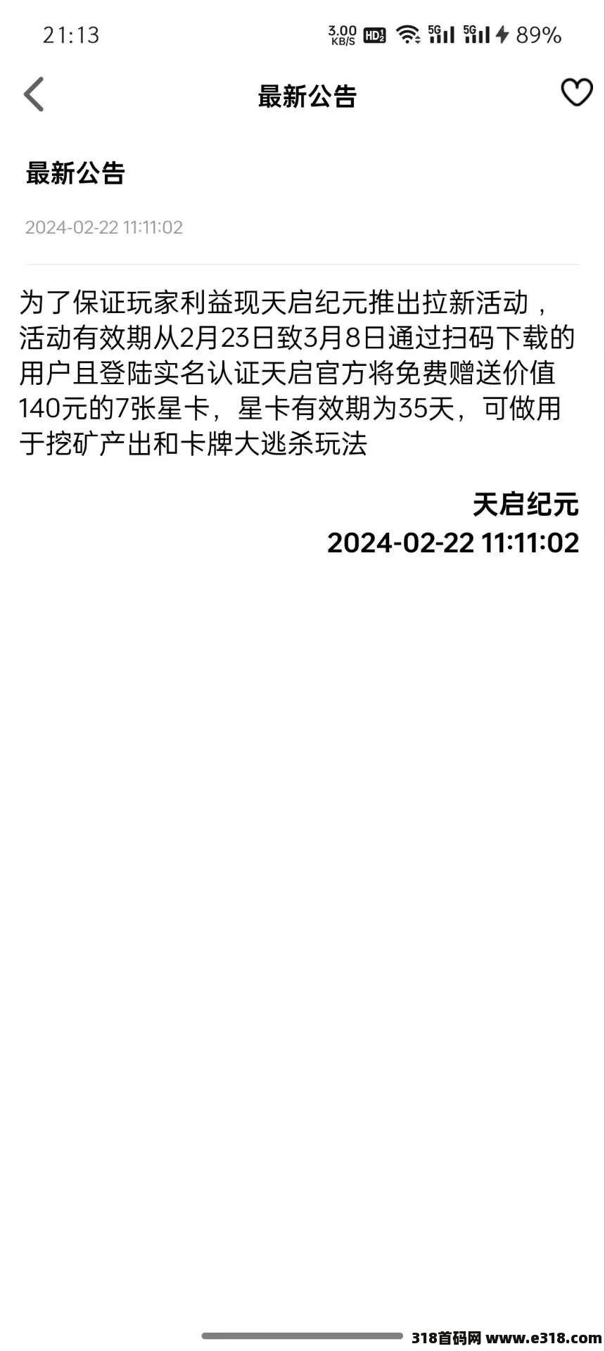 新项目天启纪元,现在免费送七张卡,每天自动**,时间段过了一张卡要20,要的赶紧联系我,带你们免费上车