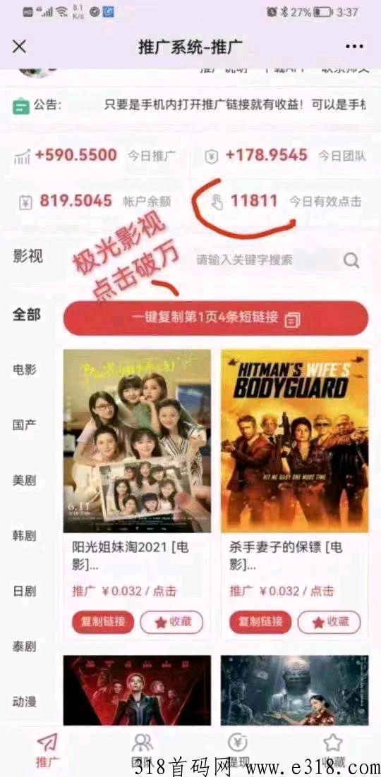 或QQ空间,也可以自己看免费电影,分享电影链接 别人一点击就有钱。推广团队还有** 每天撸点零花钱完全可以 ,而且一天一结,5块钱既可提,24小时内到账