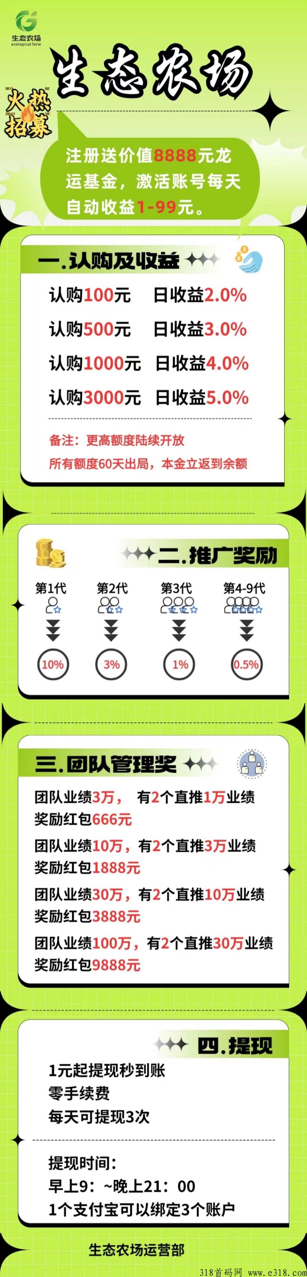 | 免责声明:合作之前建议签订合同,318首码网作为信息共享平台无法对信息的真实性及准确性做出判断,不承担任何财产损失和法律责任,若您不同意该提示,请关闭网页且不要在本站拓展任何合作,否则造成的任何损失由您个人承担。 | |