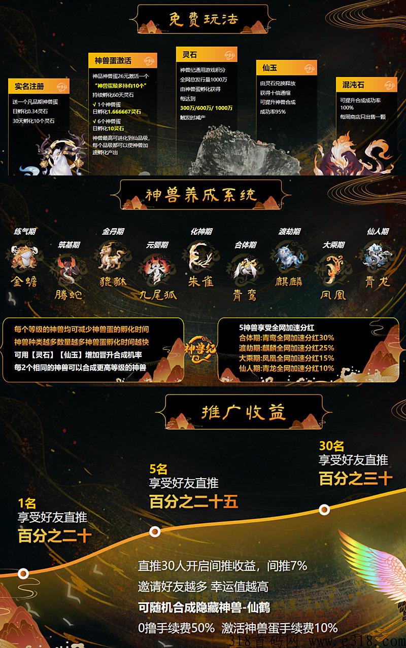 五、推广好友30人开启间推收益7%直推30%,并获得幸运值可随机开启隐藏神兽仙鹤