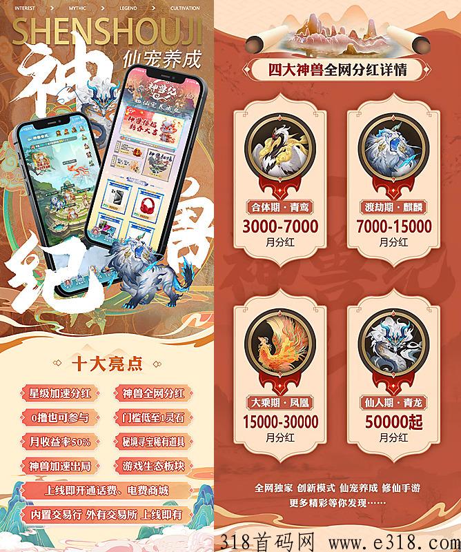 神兽纪:全网独家 创新模式 仙宠养成 稀有道具高价回收 神兽独享全网** 团队享受星级**