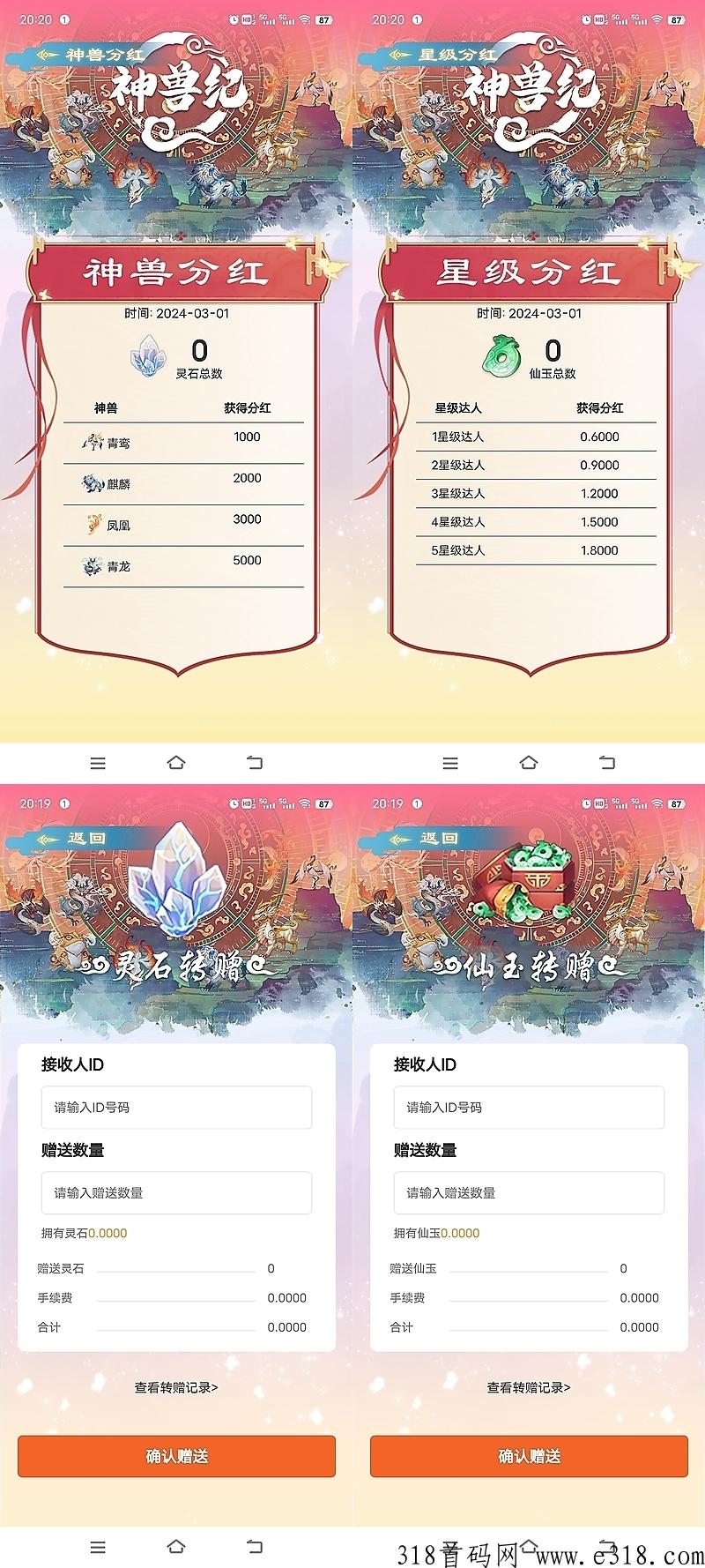 仙玉:由灵石兑换释放,可转赠,可商城购物,缴话费,十倍通缩提升合成神兽95%成功概率