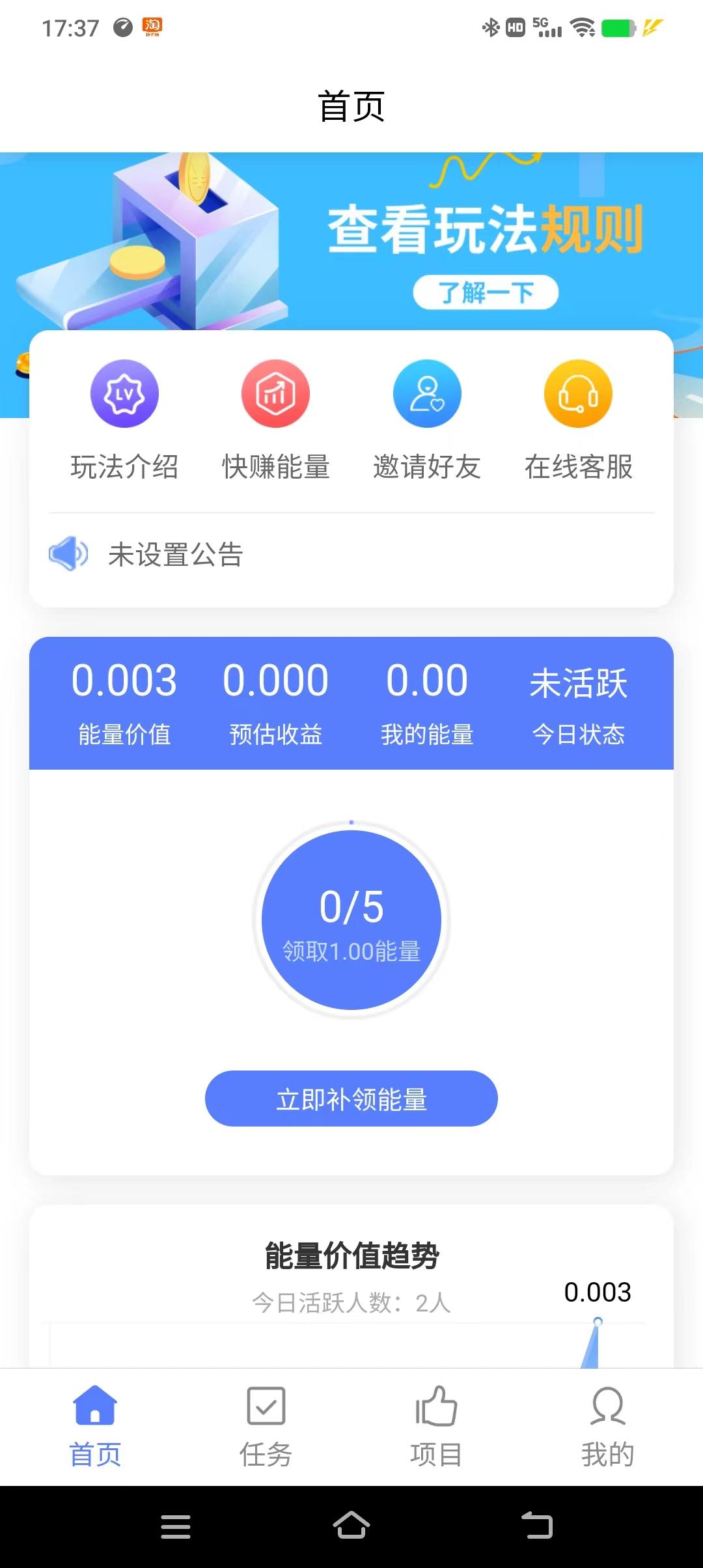 每增加1个 活跃用户,能量价值自动增加0.0015元