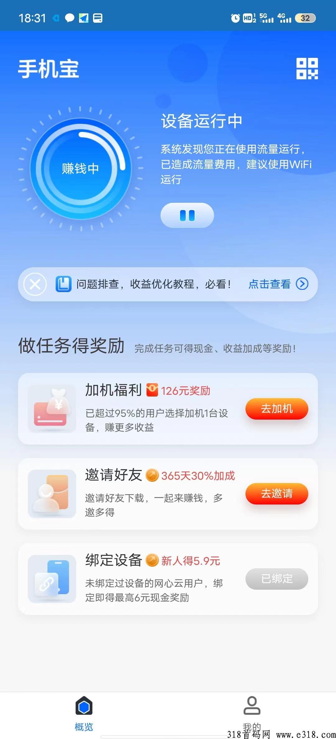 手机宝,全网八年神盘深圳网心云旗下、刚出,每天轻轻启动一下挂机即可,不消耗流量,注册就有1块钱。多号多撸,每周二提现秒到支付宝!也可以同步网心云,共享wifi挂机赚钱。攻略可以进平台加客服进群,日赚几十上百不是问题。邀请码 VWGfFX5y