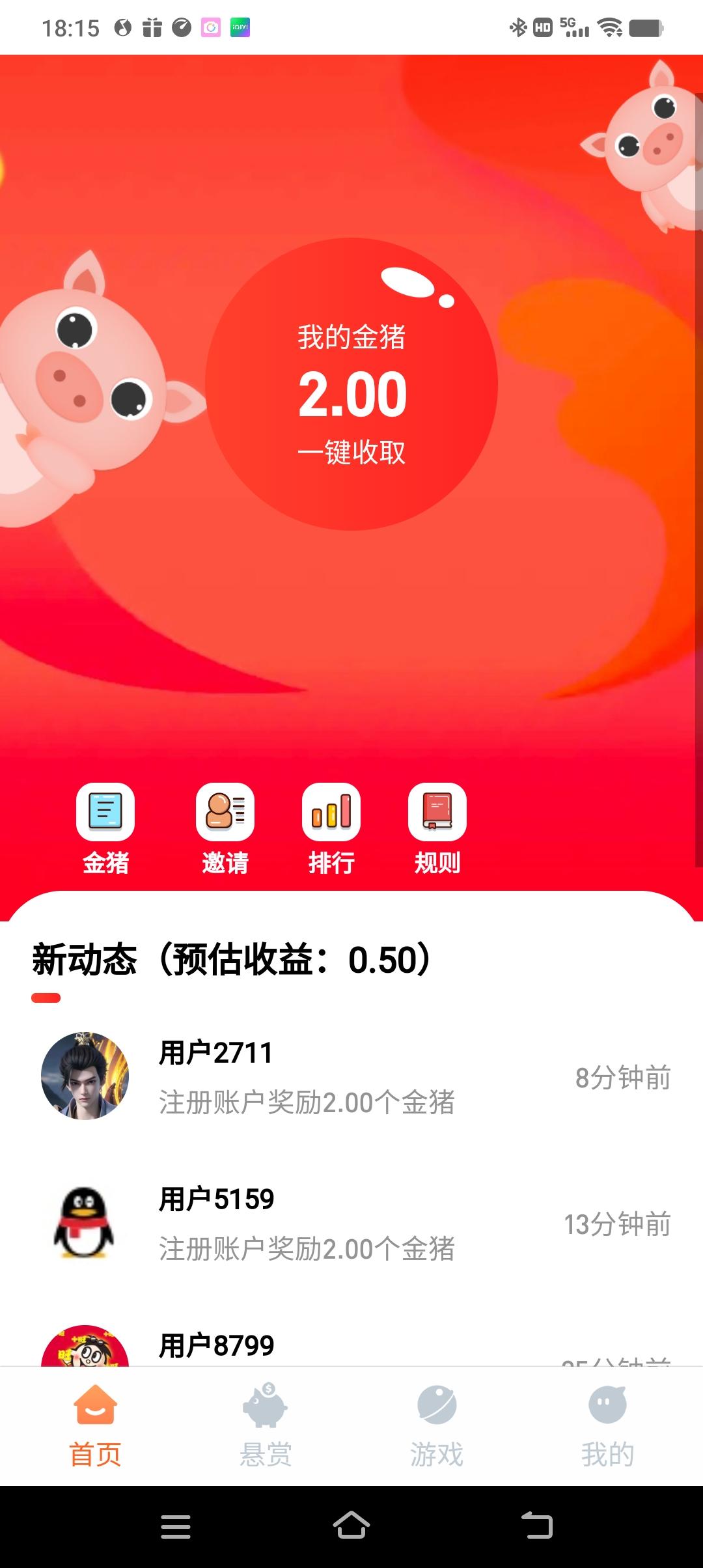 邀请一级30%金猪奖励,二级20%金猪奖励每参与1次任务或试玩,可额外获得1个金猪
