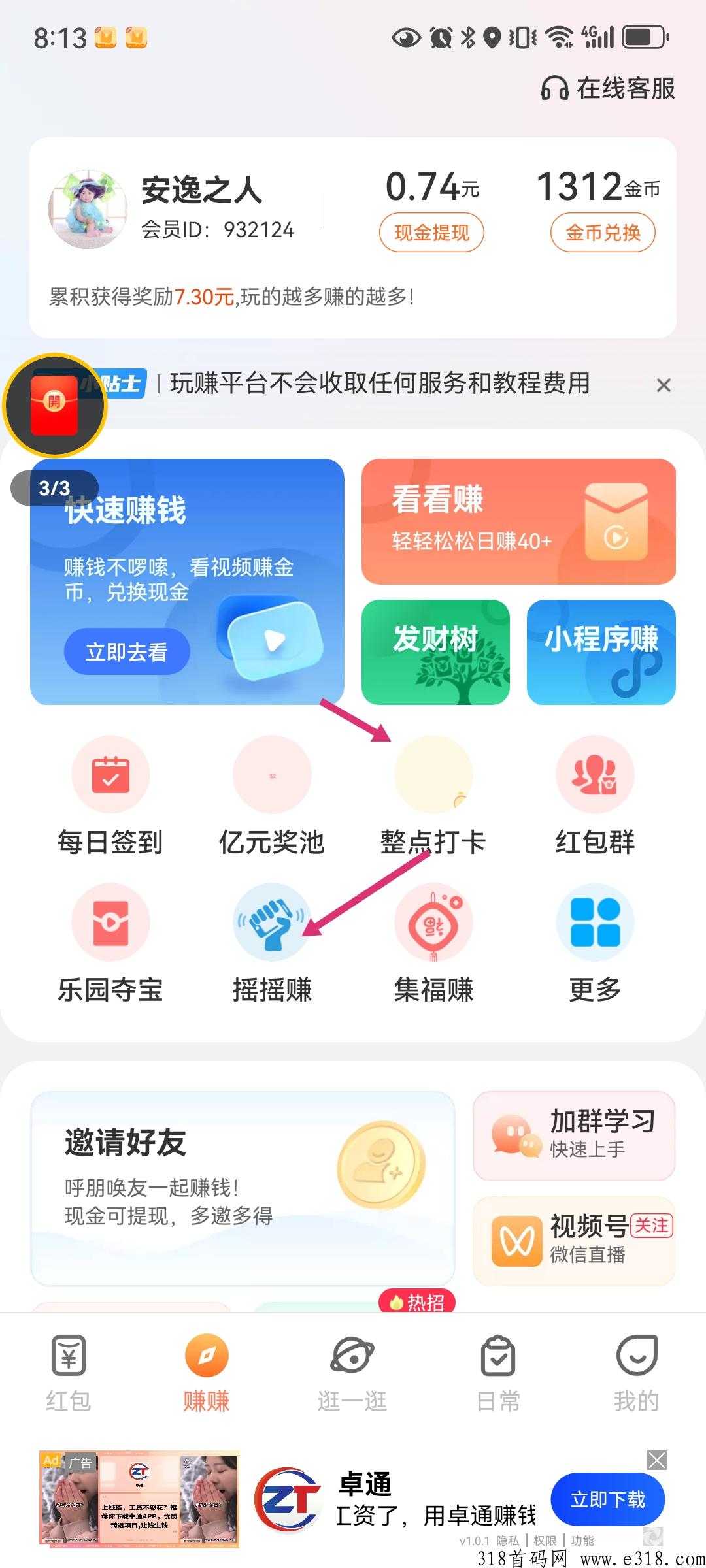 我每天都是优先刷气泡红包,以及整点打卡红包和摇摇赚!摇摇赚满0.1元直接提现!其他获得的金币,需要点右上角金币兑换手动兑换后提现,也是秒到账的!