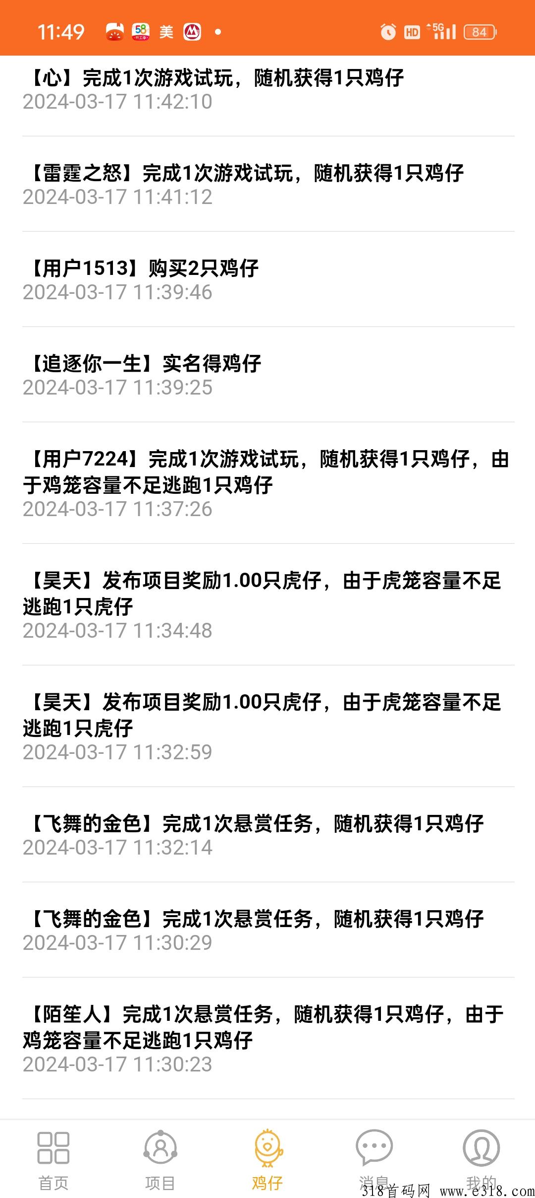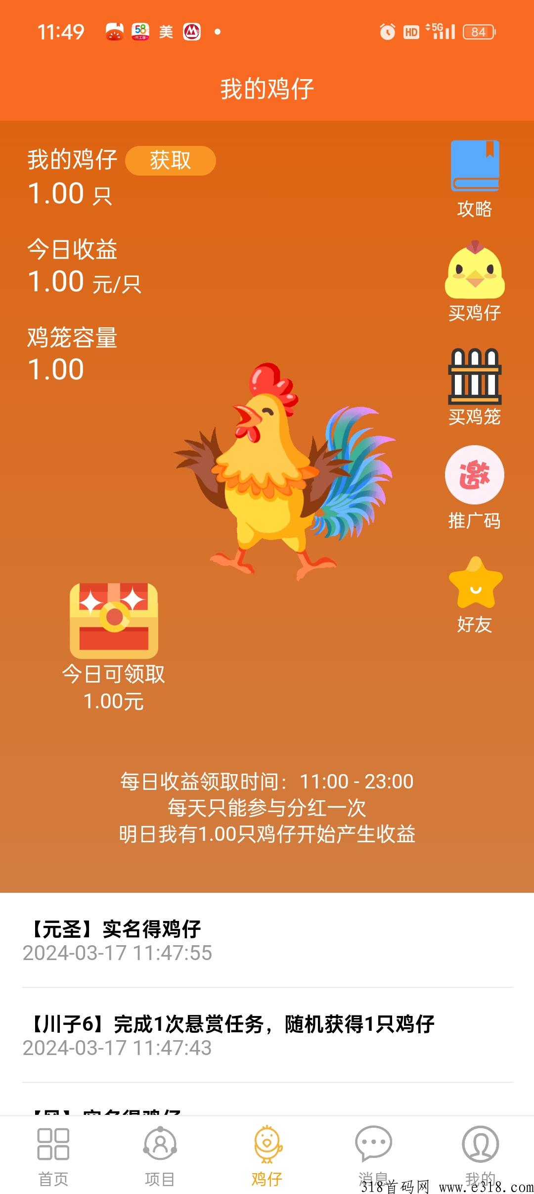 每参与1次任务或试玩,可额外获得1个鸡仔