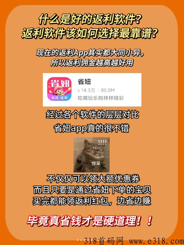 省妞已经逐渐构筑起了集淘宝、天猫、京东、拼多多等各大主流电商平台,饿了么、美团外卖等外卖平台,旅游、票务、出行、加油等高频生活服务全场景的线上生活商城。省妞将精选好货,发挥平台导购能力,帮消费者实实在在省钱的同时,为消费者精选更优质的商品。省妞邀请码55555 返点高。