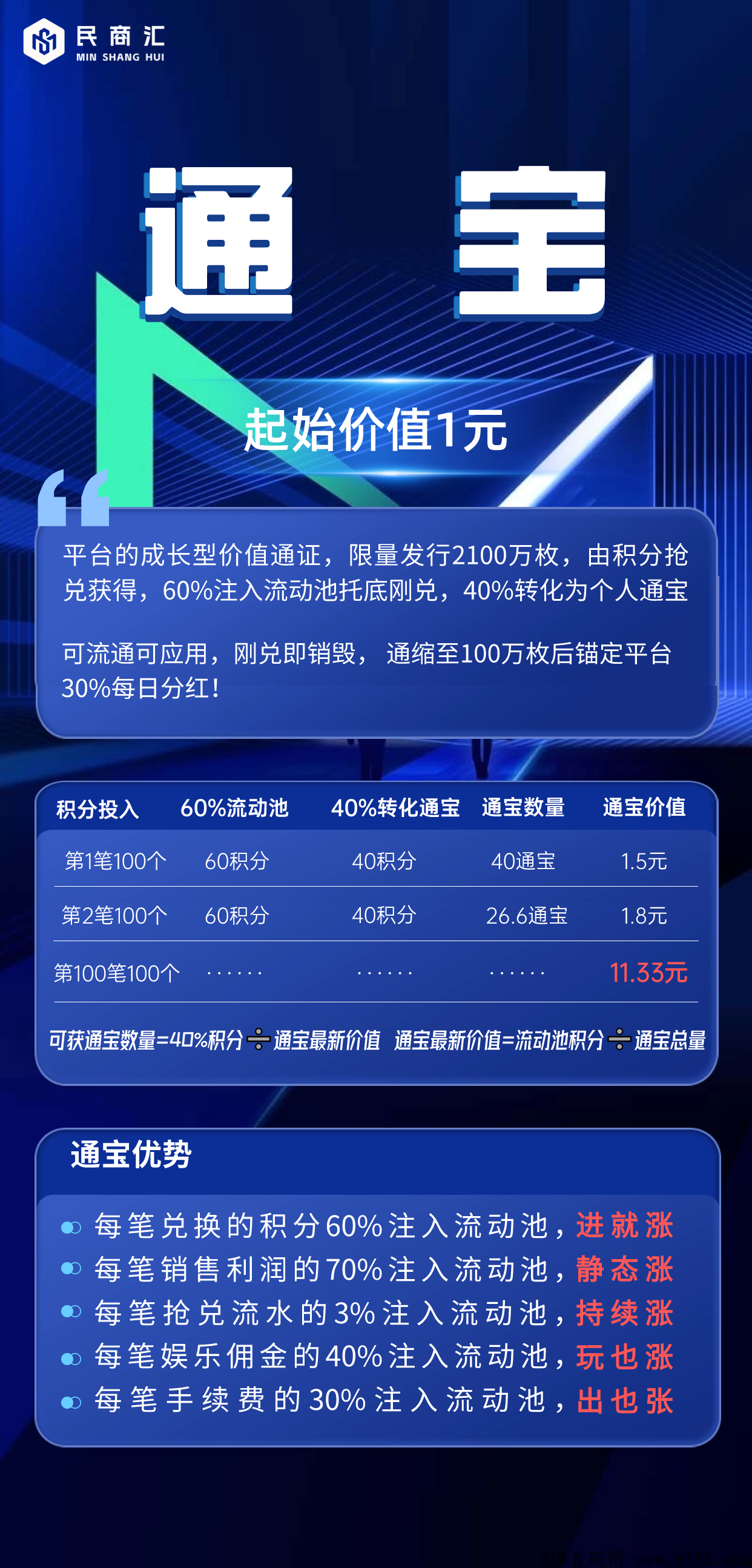 通宝=民汇商城里的大饼。总量2100W个。你值得拥有