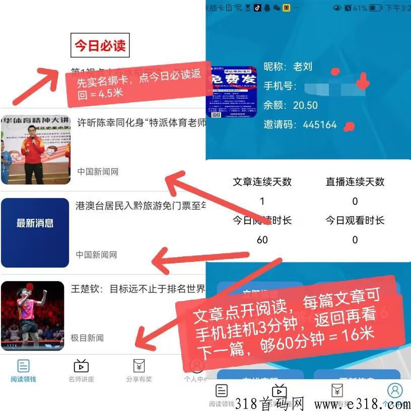 一天16块, 先实名在阅读,另外分享至抖音、快手、微信、今日头条,可获得2元,四个平台就是8元