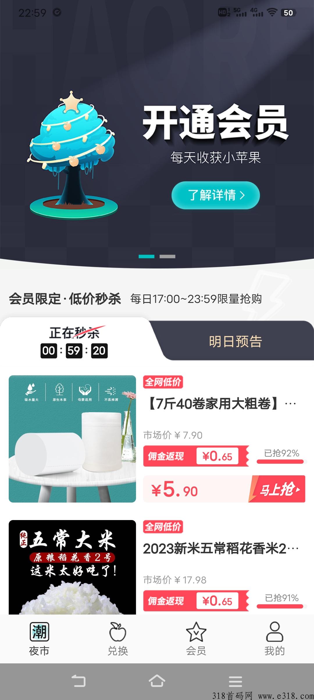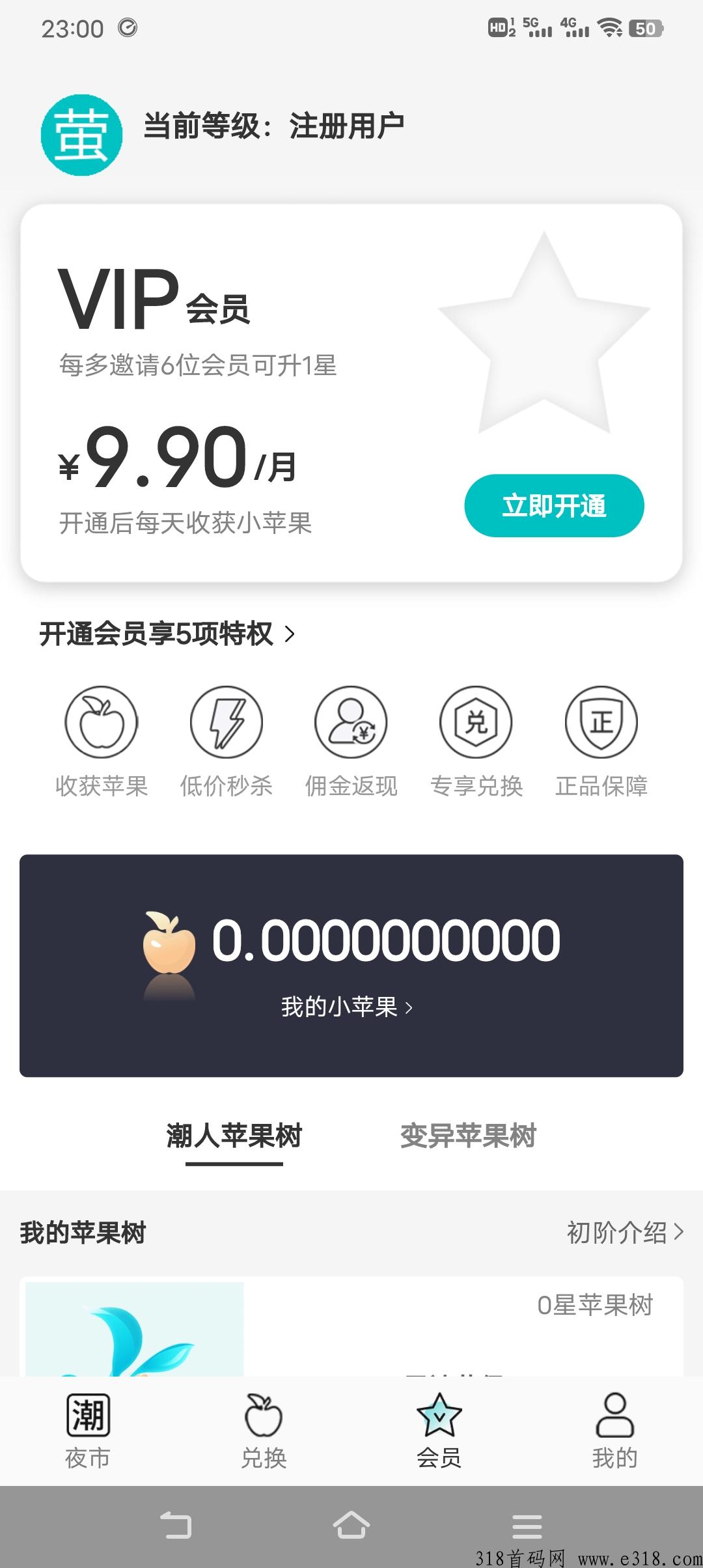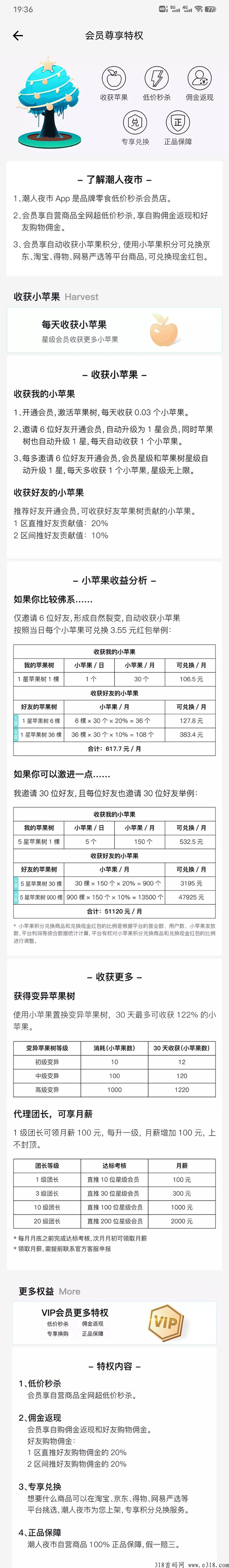9.9元开通会员,每天能获得小苹果,小苹果3米+/个,每天涨价,小苹果能换红包提现,能转赠交易,还能兑换商品包邮到家。能上任务包