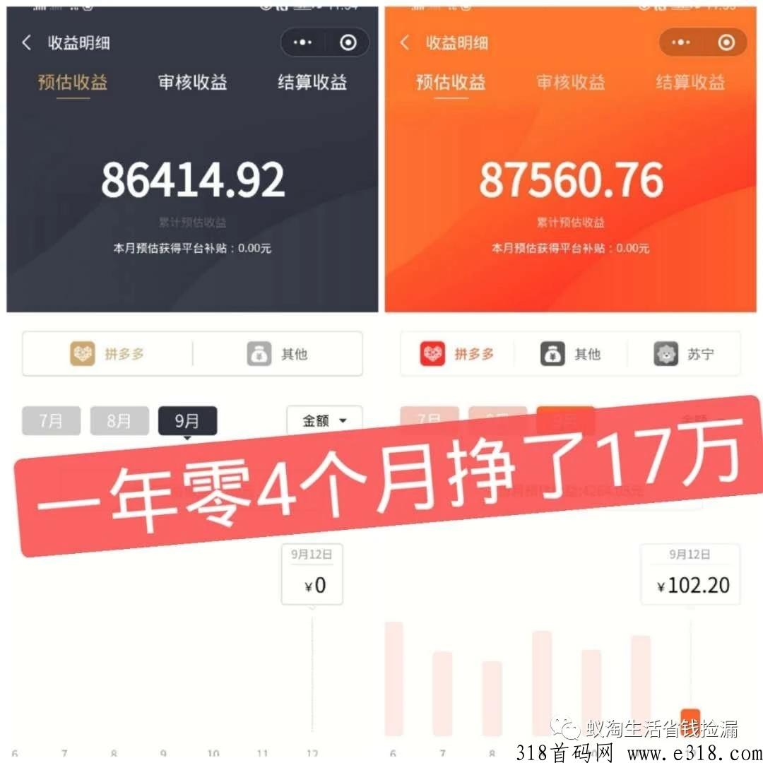 2.然后我们详细讲解一下怎么赚钱:这个是蚁淘和拼多多联合的福利,返现专区一天能撸30单,每单佣金有0.3到1块,看起来一天只能撸二十几块,其实还有很多隐藏收益,比如拼多多商家好评有的会给红包,一单最少都是1块,最多有9块,和商品价格有关,这30单,我们按40%的商家红包算,平均2块算,一天就有24块,这样一天下来有50+收益了1.蚁淘首页的返现专区里面有很多商品,全部都是0元撸的,而且还有佣金