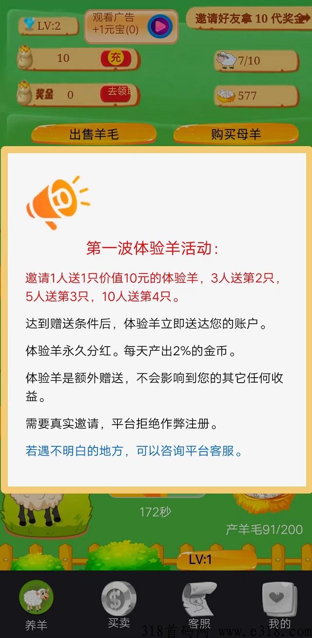 奖金制度:依据用户活跃度、贡献提供奖金,包括直接或间接邀请的用户充值与租羊收益的百分比奖励。