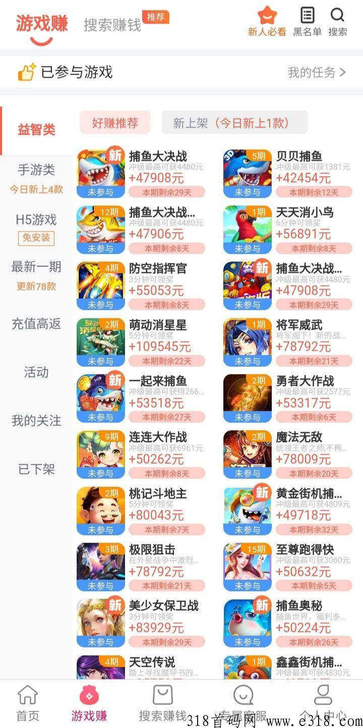 1、试玩手机游戏赚金币分荭,每个币每天分0.5,100个币每日分得50米