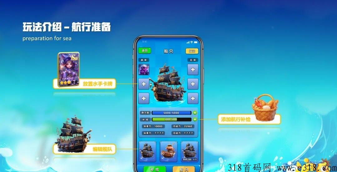 通过购买水手卡片,添加航行补给,进行探索获得材料,通过建设岛屿产出航行补给,升级岛屿可以打造舰队,提高游戏收益