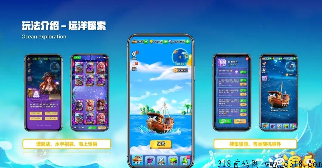 游戏涉及远洋探索,卡牌养成、岛屿建设等