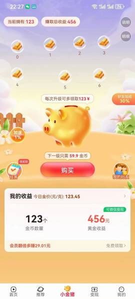 游戏+短剧短视频+任务+网购+直播+商城为一体的模式,全新IP玩法增加金币收益,纯零撸最低月入500左右,投米玩法有更多收益,金币可交易官方兜底0.1一个,走路赚,欢乐游戏赚等增加收益和消耗玩法!