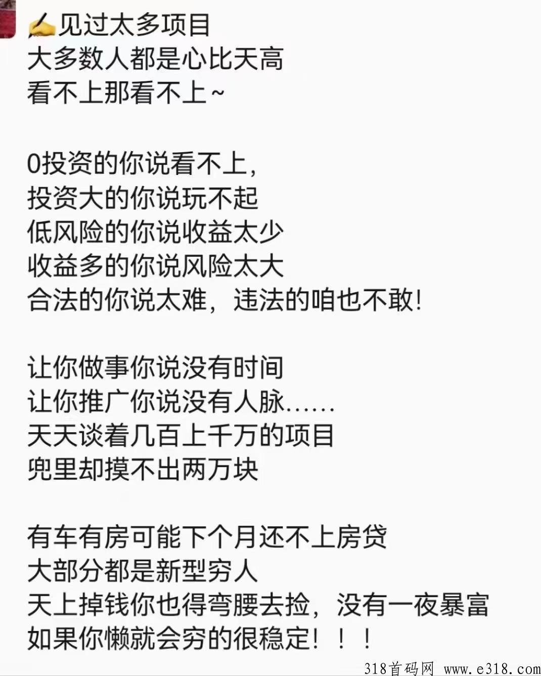 | 免责声明:合作之前建议签订合同,318首码网作为信息共享平台无法对信息的真实性及准确性做出判断,不承担任何财产损失和法律责任,若您不同意该提示,请关闭网页且不要在本站拓展任何合作,否则造成的任何损失由您个人承担。 | |