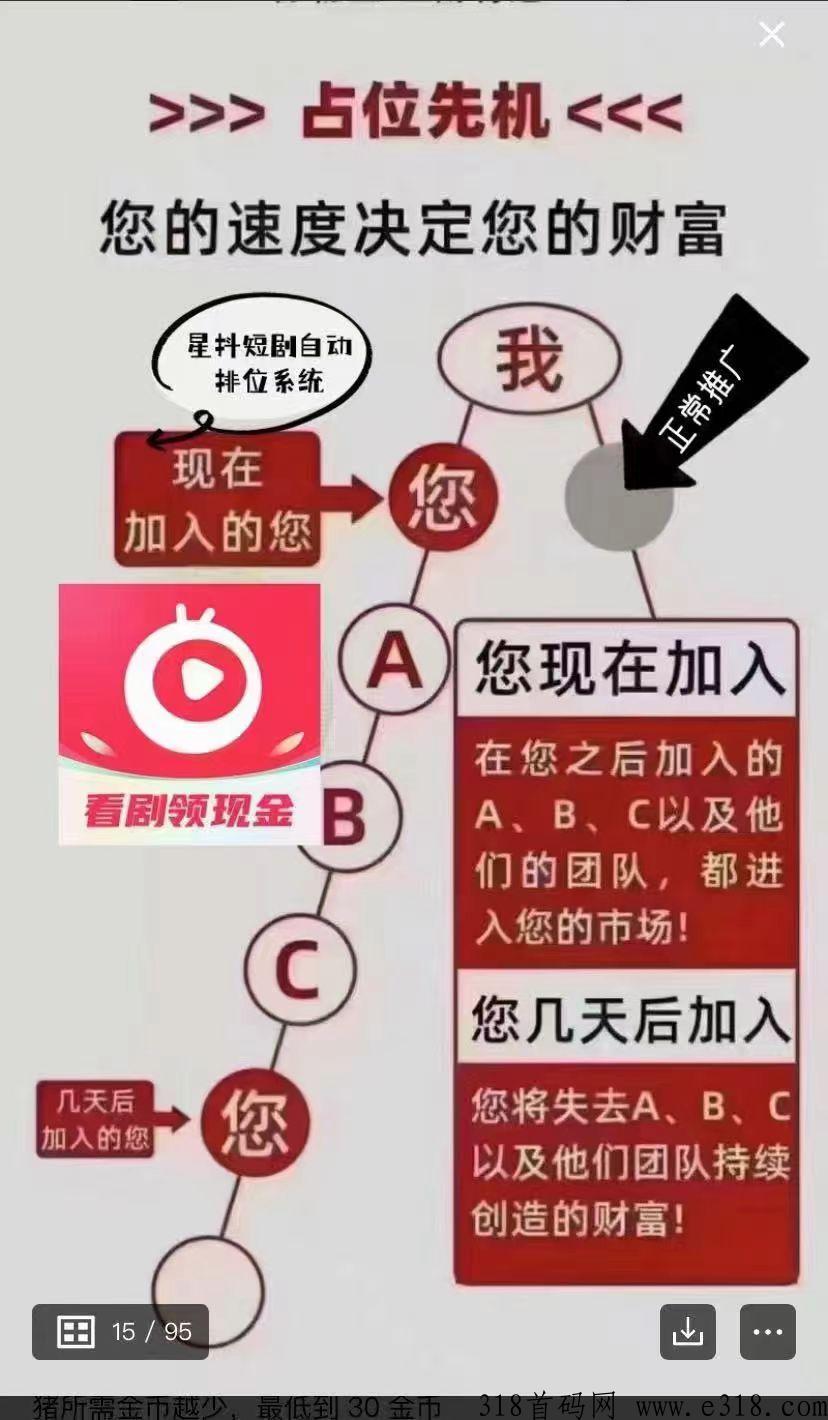 星抖短剧(零撸)全网公排一条线,注册的越早,滑落的团队越多。
