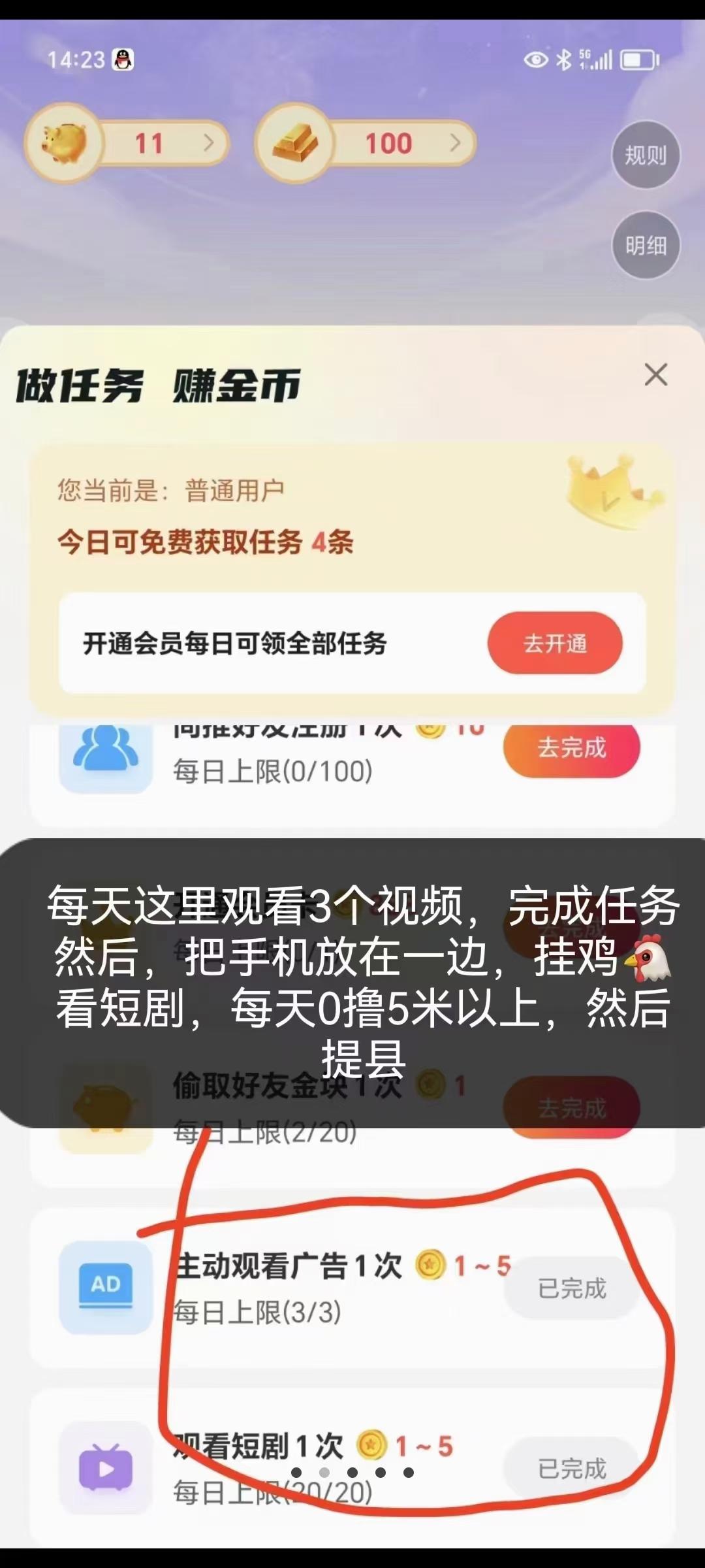 每天签到刷短剧可以获得大量金币,一天100多金币=4元