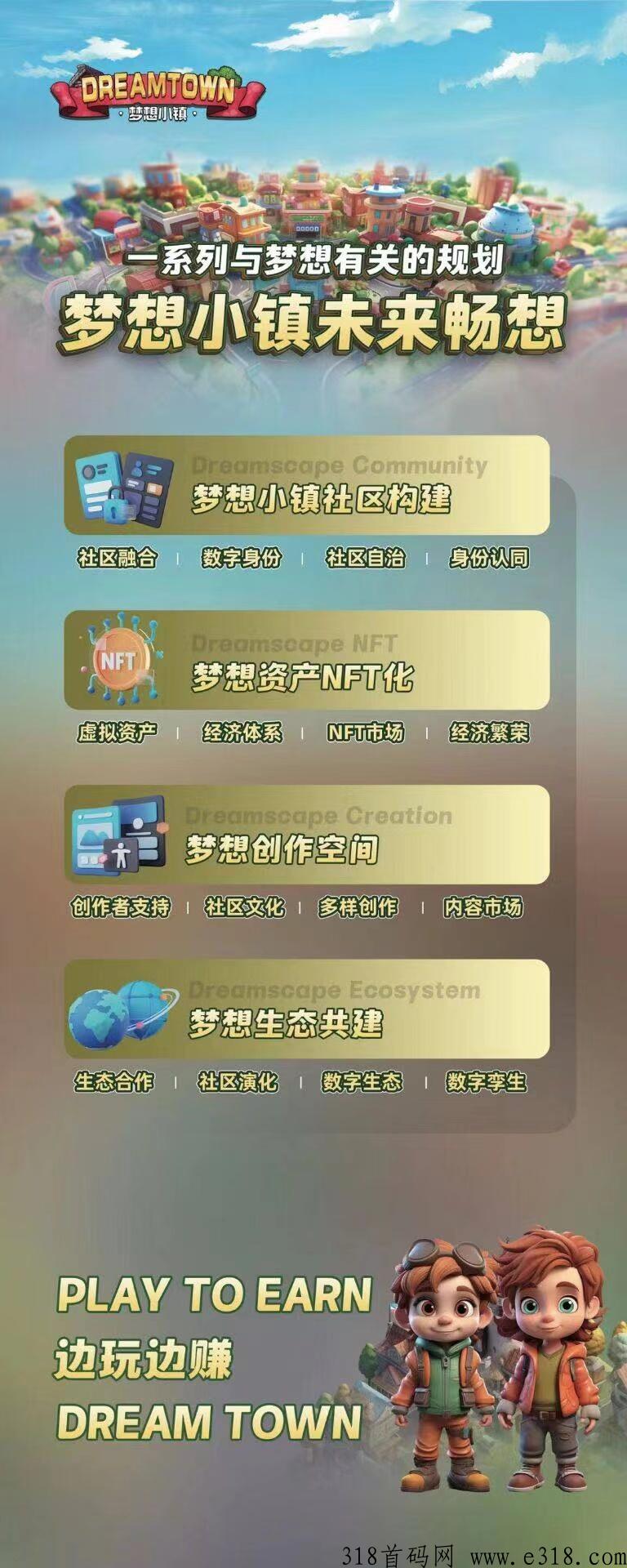 梦想小镇由美国游戏公司 Maxis 联合匿名加密团队耗时三年孵化打造,对游戏经济模型精雕细琢,对游戏趣味性、创富型、娱乐型进行全局沙盘推演,确保给玩家带来沉浸式的GameFi 全新体验。.