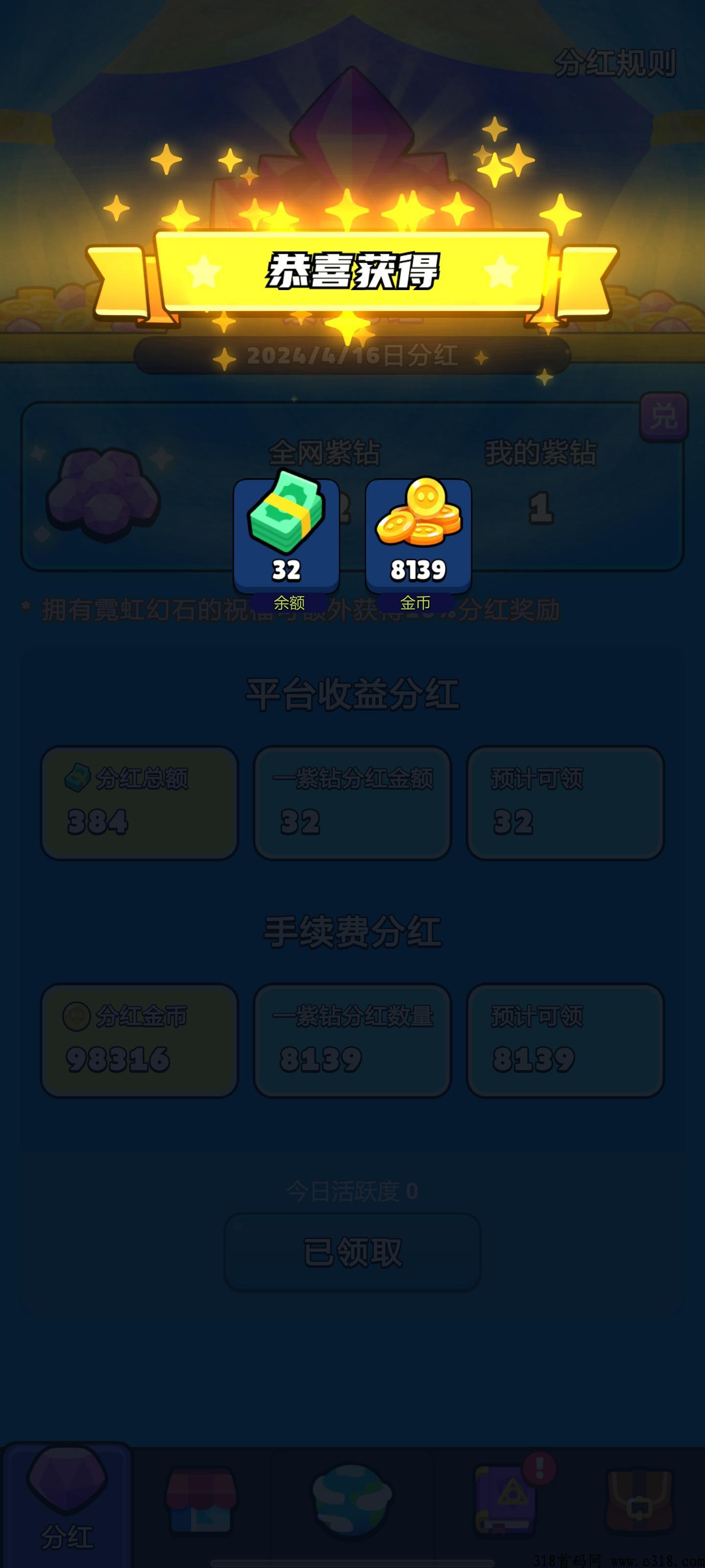 有米,纯零撸养成游戏,不需要充值一分钱,交易市场已开,升级打怪获得的所有道具都可以交易,交易成金币提现或者转赠,转赠场外价格更高 今天刚拿分鸿
