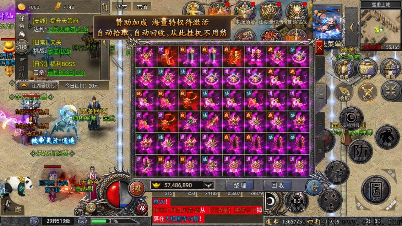 自备闲置手机或电脑 每天挂机打打装备就行,每天统一装备回收