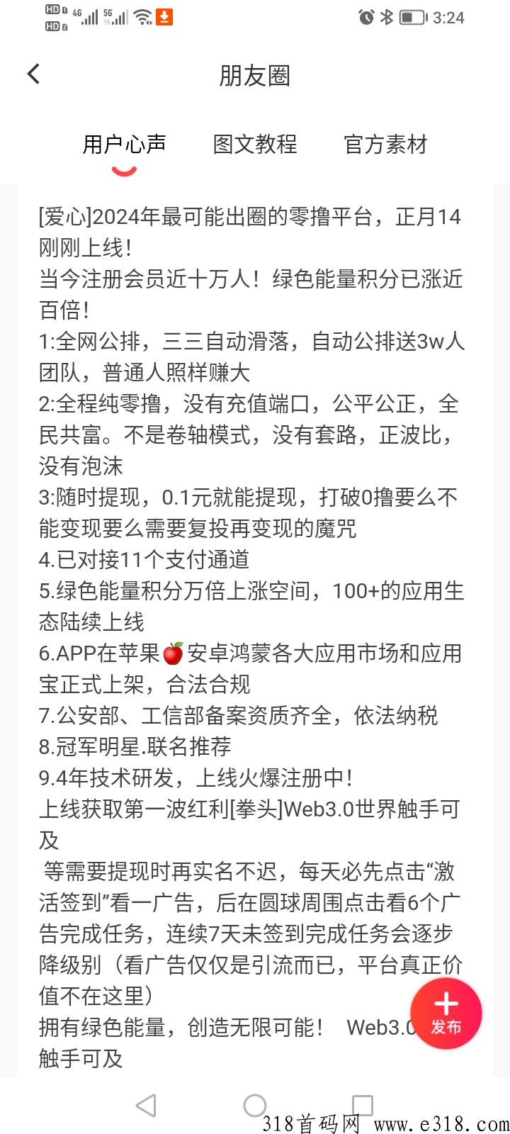 每隔24小时花几分钟看7个小广告→自动产积分→积分随时可兑换余额提现(0.1元起提)→也可留着增值(己涨300多倍)积分生态应用流通