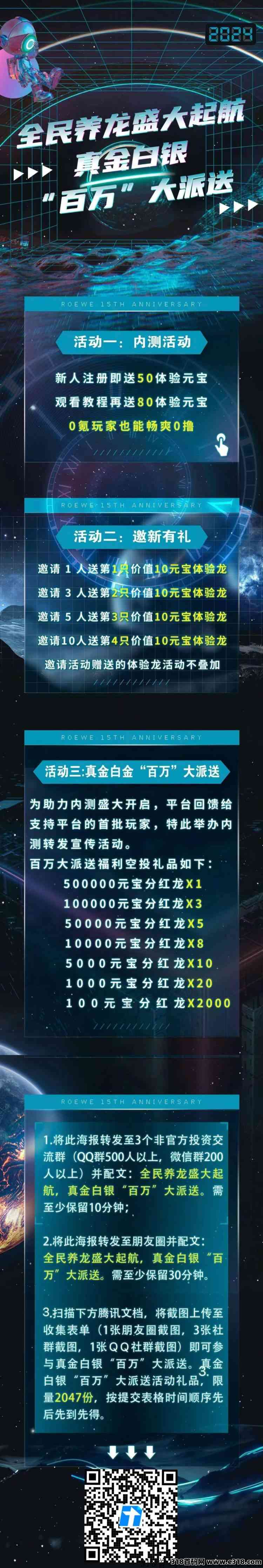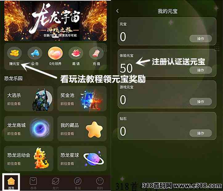 1、注册实名认证,送50个体验元宝,推广好友认证满10人,送4只体验龙,每只产99个元宝(内测活动)
