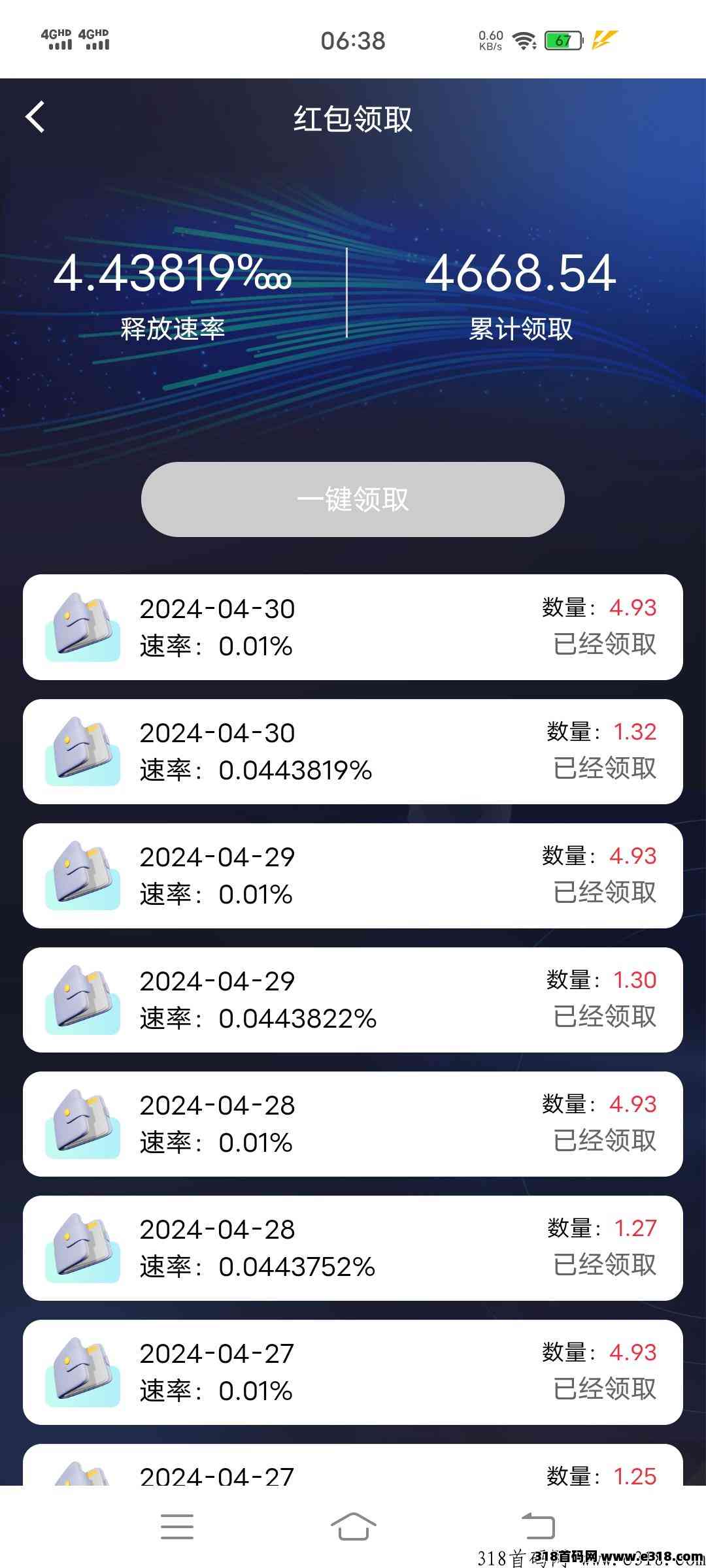 我们的释放机制独具特色。100个释放卷起分,按照万分之4.43的比例释放释放,让您享受到实在的收益。每日到我的页面,即可轻松领取您的释放收益。