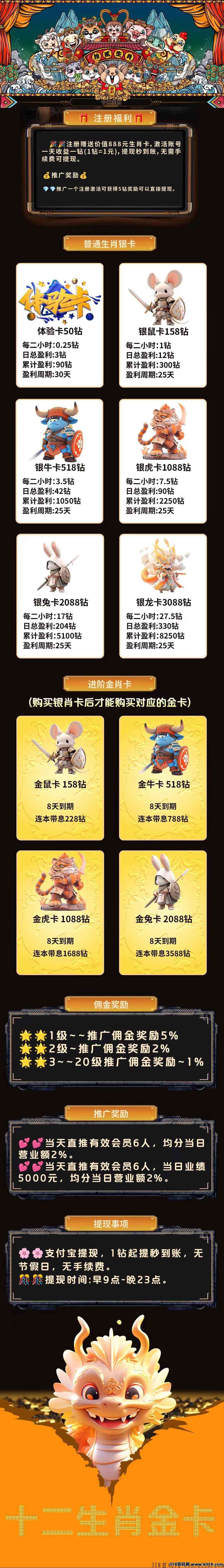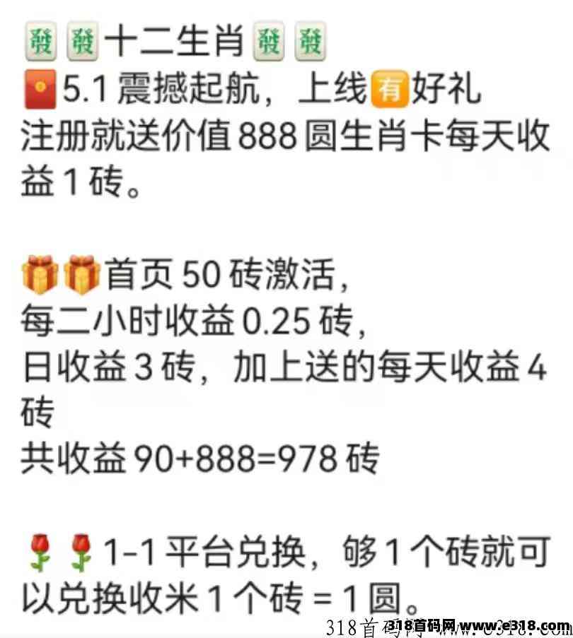 注册就送价值888圆生肖卡每天收益1砖。