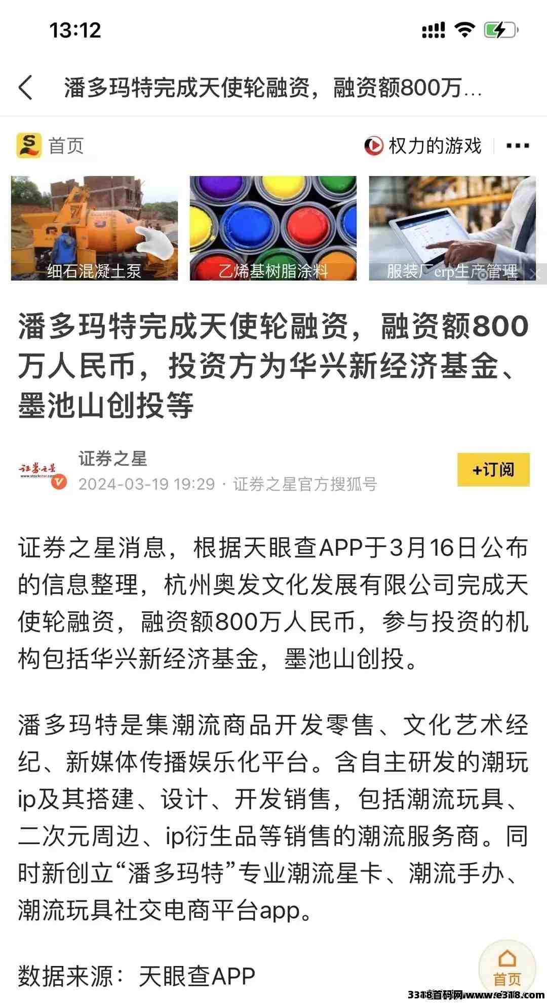 潘多玛特获华兴新经济基金、墨池山创投800万元融资