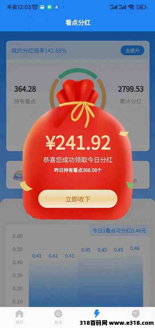 日常收益:每个看点每天可以带来0.45元的收益,持有的看点越多,每天可获得的收益也越多。另外趣看短剧官芳包回收“看点”,目前市场价8元左右一个,供不应求。长久稳定的项目,没有那么多套路,非常适合上班族或是空闲的朋友在家看短剧搬砖!