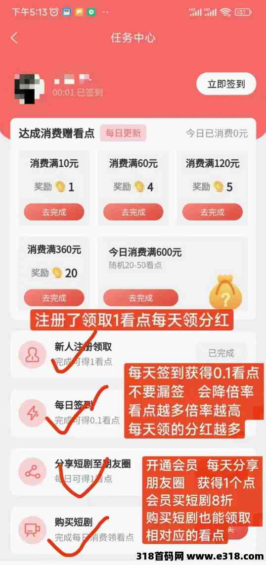 趣看短剧首码芬红,刷短剧赚看点,看点是趣看赠送给用户的一种积分奖励,用于感谢用户对趣看短剧平台的支持,所有人签到也可以拿看点了,每个看点每日分荭零钱0.45元,用户拥有看点数量越多,芬红工资也就越多......