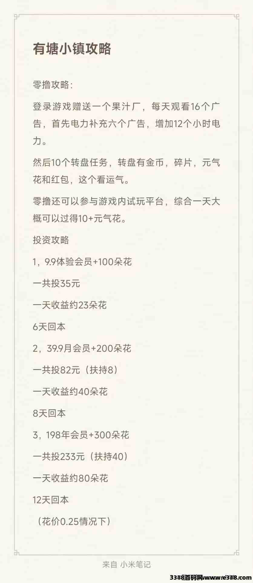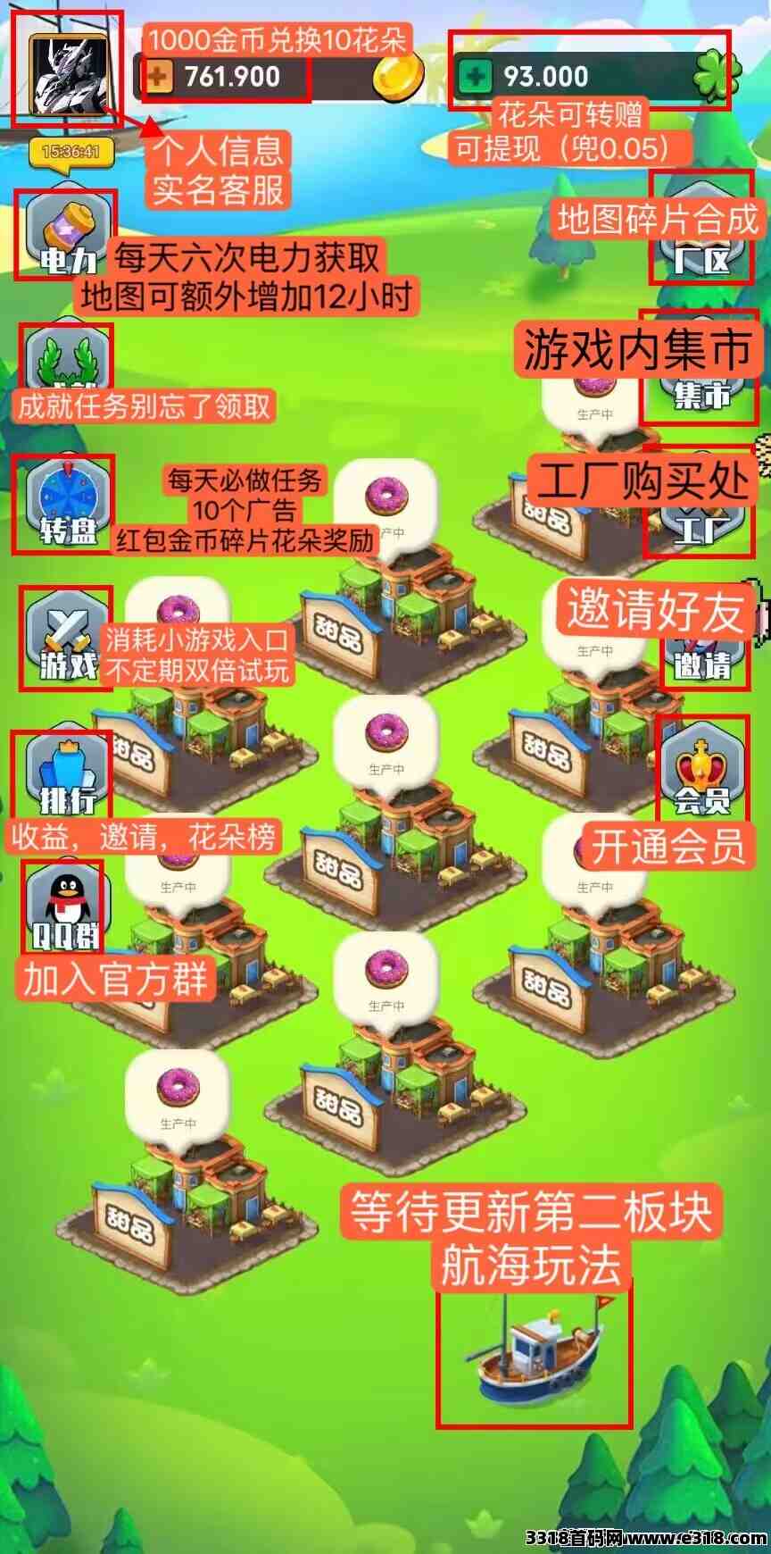 在有塘小镇,可以通过生产商品获取金b,然后将金b兑换成元气花。元气花不仅可以变现,还可以赠送给其他玩家,甚至用来建造更多的工厂。除此之外,还有转盘游戏可以帮助你快速积累财富。