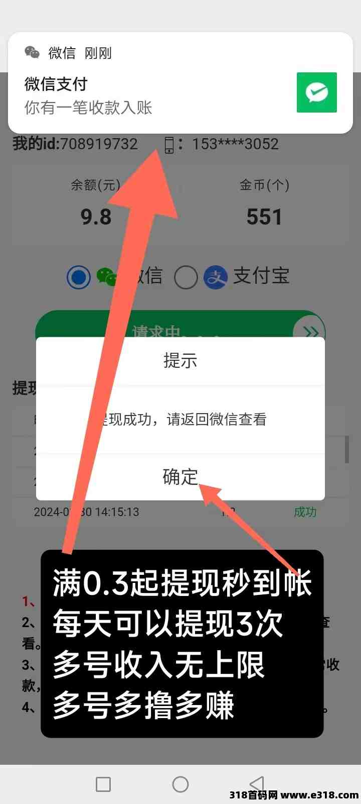 收益汇总:所有微信号的收益可以汇总到大号中,统一提现。