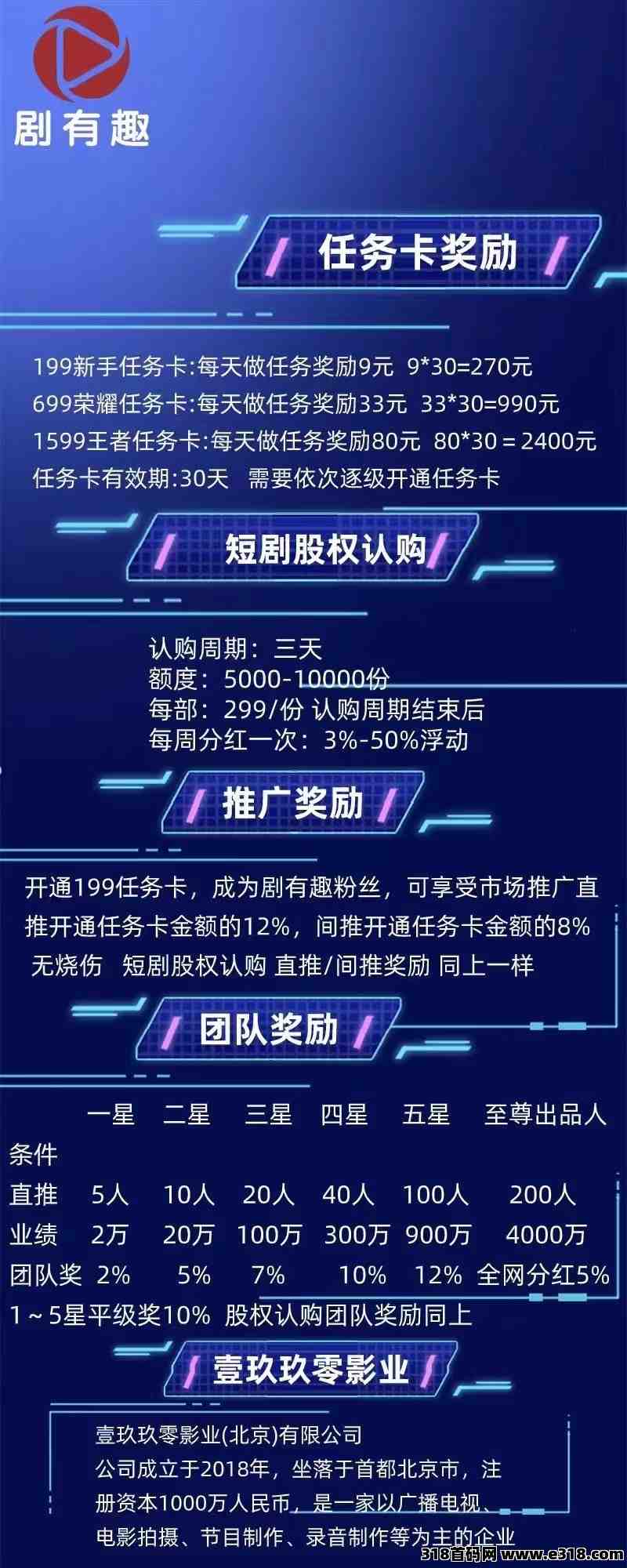 短剧股份权益认购: 用户可以在平台上认购短剧股份,每周上新的短剧可以认购,认购周期结束后会进行氛荭,满3倍后结束氛荭,认购的每一份也可以变成一个剧豆,集齐100个剧豆可以合成剧有趣股权咔。