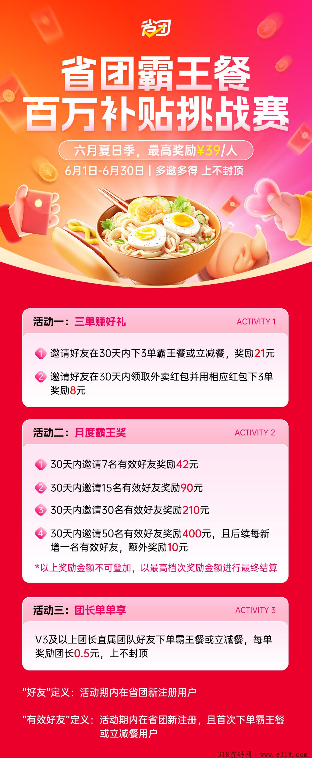 一个是邀请用户下三单霸王餐或者立减餐上级奖励21元,另一个是用户用cps红包下三单奖励8元,这里加起来就29元了,相当于我认定这个用户下过三单之后会是一个长期用户,后续会持续下单。