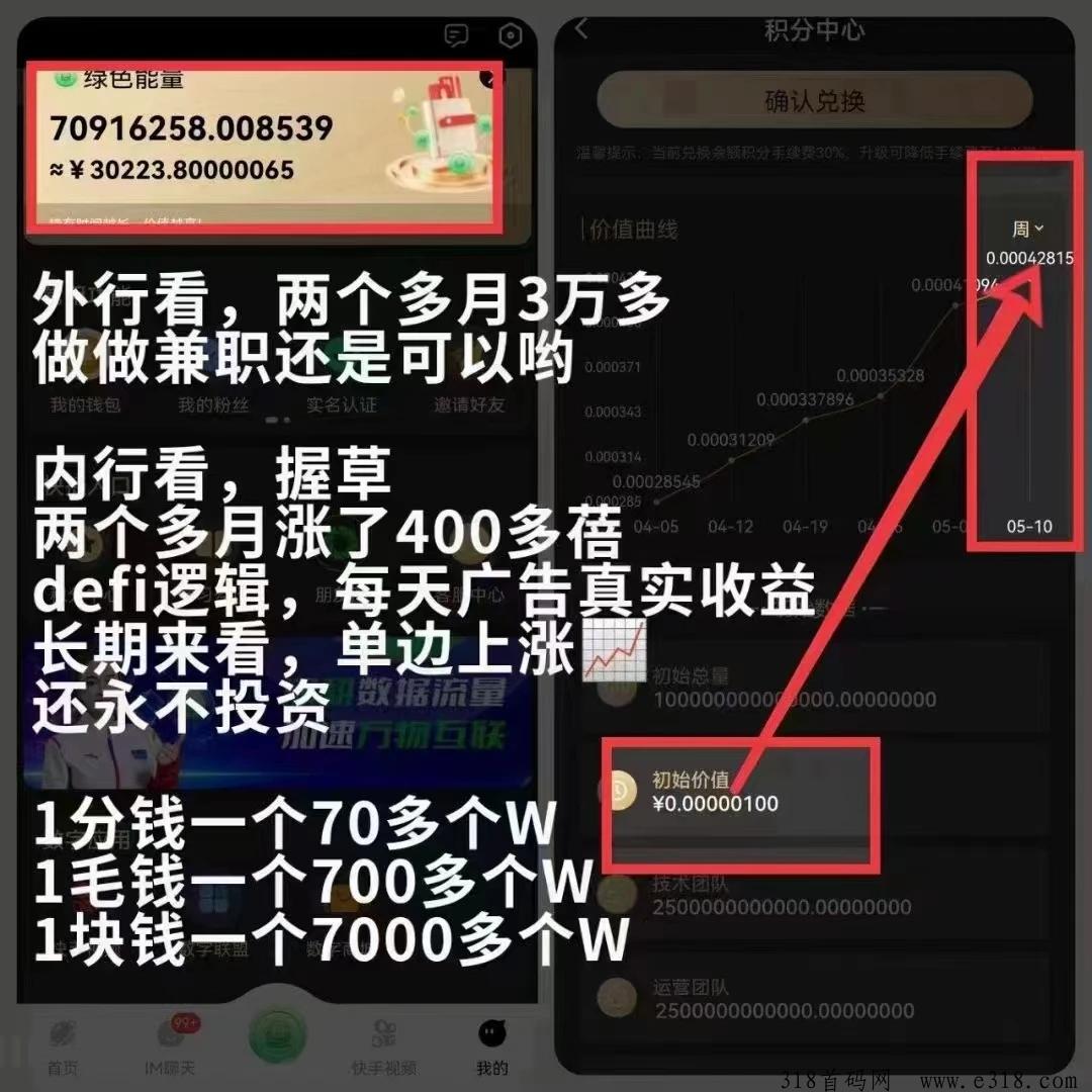 从上线2个多月绿色能量单价涨了400多倍,以后涨到1分,1毛,1块,能赚多少就看你手里有多少绿色能量