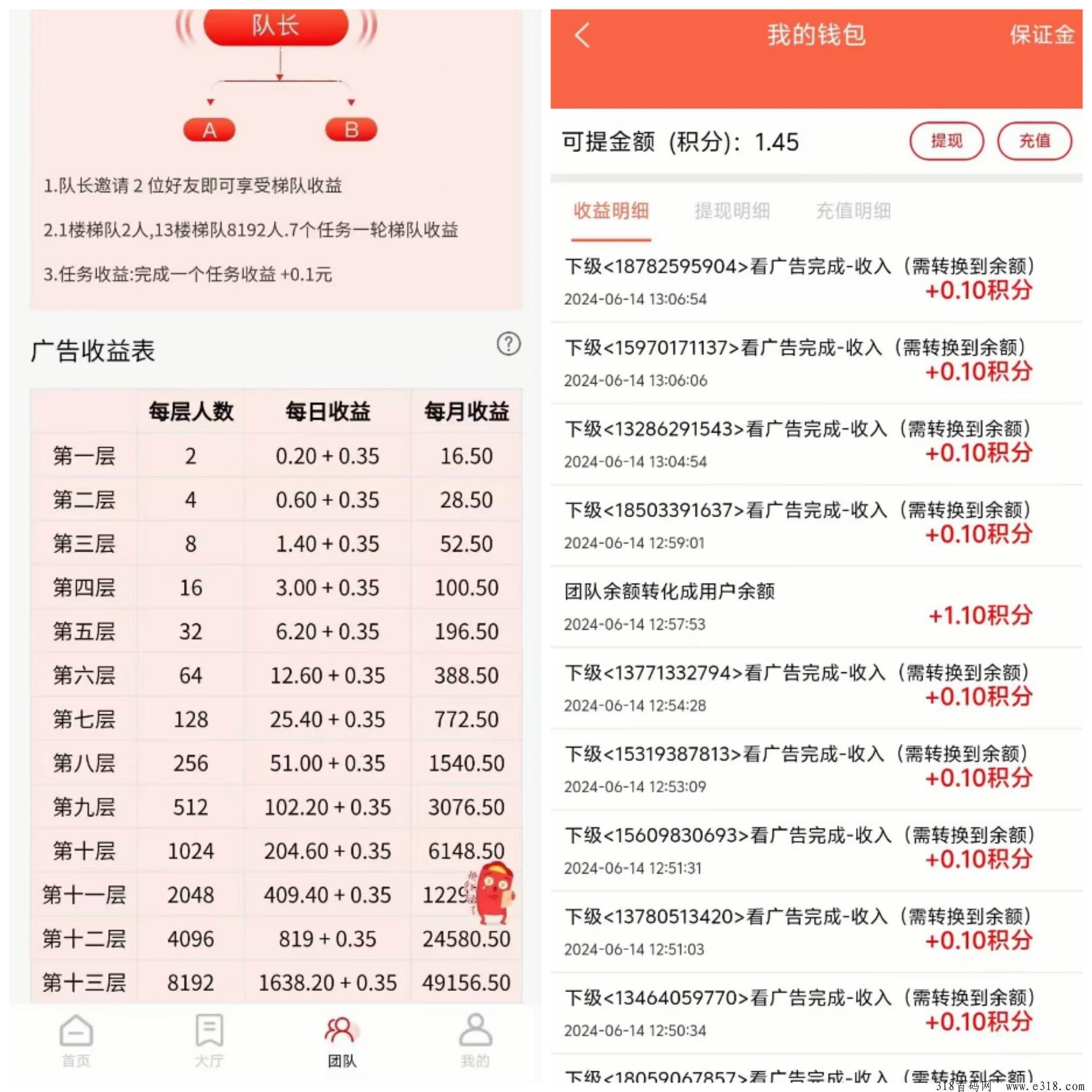 4、团队下的成员完成每日任务,每人每天贡献0.1元